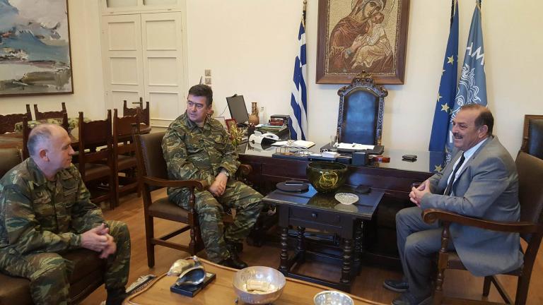Δελτίο Τύπου-Θέμα: Στο Δήμαρχο Ρόδου ο Γενικός Επιθεωρητής Στρατού Το Δήμαρχο Ρόδου κο Φώτη Χατζηδιάκο επισκέφτηκε στο γραφείο του στο Δημαρχείο, ο Γενικός Επιθεωρητής Στρατού και Β’ Υπαρχηγός του Γενικού Επιτελείου Στρατού Αντιστράτηγος κος Νικόλαος Μανούρης, παρουσία του διοικητή της 95 ΑΔΤΕ Υποστράτηγου κου Νικόλαου Χιονή και του Αντιδημάρχου Ανάπτυξης κου Γεώργιου Πόκκια, στο πλαίσιο της προγραμματισμένης επίσκεψης του στην ακριτική Δωδεκάνησο. Κατά τη διάρκεια της συνάντησης πραγματοποιήθηκε μία ολοκληρωμένη και ουσιαστική συζήτηση για την άριστη συνεργασία του Δήμου Ρόδου, με τις Ένοπλες Δυνάμεις. Ο κος Χατζηδιάκος αναφέρθηκε στο πνεύμα συνεργασία που έχει καλλιεργηθεί τα τελευταία χρόνια από τις δύο πλευρές, που ενισχύει το αίσθημα ασφάλειας των πολιτών και δίνει τη δυνατότητα να αντιμετωπιστούν με επιτυχία τα προβλήματα που παρουσιάζονται ξεχωριστά. Διαβεβαίωσε ότι, ο «Δήμος Ρόδου θα συνεχίσει να είναι συμπαραστάτης στο έργο των Ενόπλων Δυνάμεων». Για την ενίσχυση του αισθήματος ασφάλειας στις ακριτικές περιοχές και για τη θέση του Ελληνικού Στρατού, να βρίσκεται, πάντα, δίπλα στον πολίτη, αναφέρθηκε χαρακτηριστικά κατά τη διάρκεια της συνάντησης ο Γενικός Επιθεωρητής και τόνισε ότι «οι αξιωματικοί και οι στρατεύσιμοι στηρίζουν το έργο της Αυτοδιοίκησης, όποτε απαιτείται, υπηρετώντας τους πολίτες και την κοινωνία». Επιπρόσθετα, ο Δήμαρχος και ο Γενικός Επιθεωρητής, εκθείασαν τη μεγάλη συμμετοχή των εθελοντών εθνοφυλάκων, στις δράσεις των Ενόπλων Δυνάμεων και τη συμβολή τους στην κοινωνική ζωή του τόπου, αυξάνοντας τη δεδομένη προσφορά των Ενόπλων Δυνάμεων, στην κοινωνία της Ρόδου. Τέλος, ο κος Χατζηδιάκος ευχαρίστησε τον κο Μανούρη για την εθιμοτυπική επίσκεψη στο Δημαρχείο Ρόδου, του απέμεινε συμβολικά πλακέτα με το έμβλημα της Ρόδου και του ευχήθηκε κάθε επιτυχία στο έργο του.