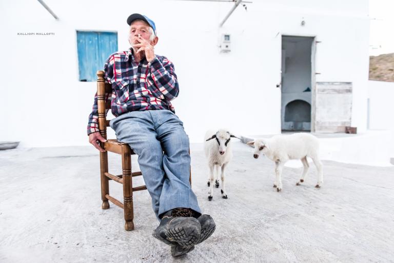 Κρατάμε χαμηλή ταχύτητα, χαζεύουμε την ερημιά, ενώ το ραδιόφωνο γρατζουνά μακρινούς σταθμούς από την Κρήτη. Κάπου εκεί, στα δεξιά, λίγο μετά τη στροφή από το εκκλησάκι του Άη Μάμα, στέκει μοναχός του ο Βαγγελάκης. Είναι ένας βοσκός, μας χαμογελά, ψάχνει μέσο, αυτοκίνητο, μηχανή, τρακτεράκι ή κλούβα φορτηγό, ότι νάναι βρε αδερφέ, φτάνει να τον μεταφέρει μέχρι το επόμενο χωριό. Παίζει με τον αναπτήρα, ξέμεινε από καπνό κι ετούτη η έλλειψη δε σηκώνει αναβολές. Τρυπώνει στ΄αμάξι και αμέσως πιάνουμε την κουβέντα,