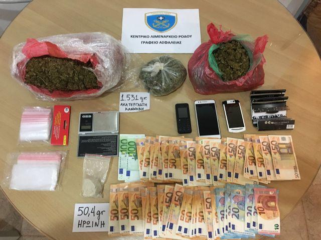Στη σύλληψη ενός 35χρονου αλλοδαπού και ενός 49χρονου ημεδαπού προέβησαν, μεσημβρινές ώρες χθες, στελέχη της Λιμενικής Αρχής Ρόδου, για κατοχή και διακίνηση ναρκωτικών ουσιών. Συγκεκριμένα, κατόπιν αξιοποίησης πληροφοριών και συντονισμένης επιχείρησης, σε έλεγχο που πραγματοποιήθηκε από στελέχη του Γραφείου Ασφαλείας της Λιμενικής Αρχής Ρόδου, στην περιοχή ''ΠΑΣΤΙΔΑ'' ν. Ρόδου, βρέθηκαν στην κατοχή του μεν 49χρονου ηρωίνη βάρους πενήντα γραμμαρίων και τεσσάρων δεκάτων (50,4gr), και στην κατοχή του 35χρονου αλλοδαπού το χρηματικό ποσό των δυόμισι χιλιάδων ευρώ (€2.500). Επιπρόσθετα, σε νομότυπη κατ΄ οίκον έρευνα που ακολούθησε στην οικία του 35χρονου αλλοδαπού, βρέθηκαν ποσότητες ακατέργαστης κάνναβης, συνολικού μικτού βάρους χιλίων πεντακοσίων τριάντα ενός γραμμαρίων (1.531gr) καθώς και μία (01) ηλεκτρονική ζυγαριά ακριβείας. Από το Κεντρικό Λιμεναρχείο Ρόδου που διενεργεί την προανάκριση, κατασχέθηκαν οι ανωτέρω ποσότητες των ναρκωτικών ουσιών, το χρηματικό ποσό, τρία (03) κινητά τηλέφωνα καθώς και δύο (02) Ι.Χ.Ε. οχήματα.