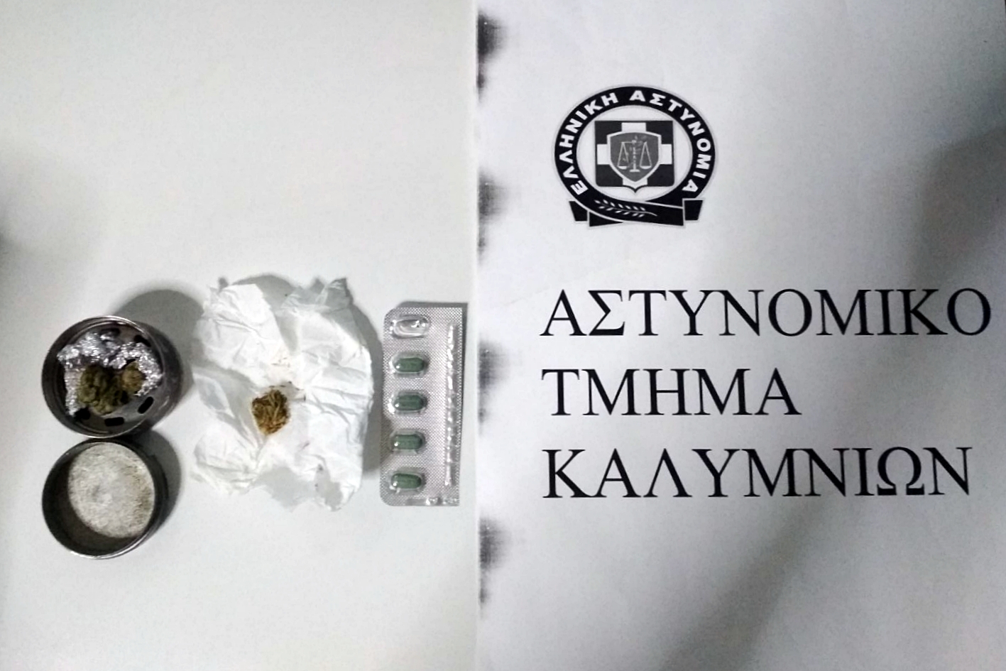 Σύλληψη ημεδαπού για ναρκωτικά στην Κάλυμνο-Την 12-11-2020 το βράδυ συνελήφθη στην Κάλυμνο, από αστυνομικούς του Αστυνομικού Τμήματος Καλυμνίων, 37χρονος ημεδαπός στην κατοχή του οποίου βρέθηκαν και κατασχέθηκαν -4- φαρμακευτικά-ναρκωτικά δισκία χωρίς ιατρική συνταγή, κάνναβη ακατέργαστη βάρους -1,3- γραμμαρίων και θρυμματιστής. (επισυνάπτεται φωτογραφία)