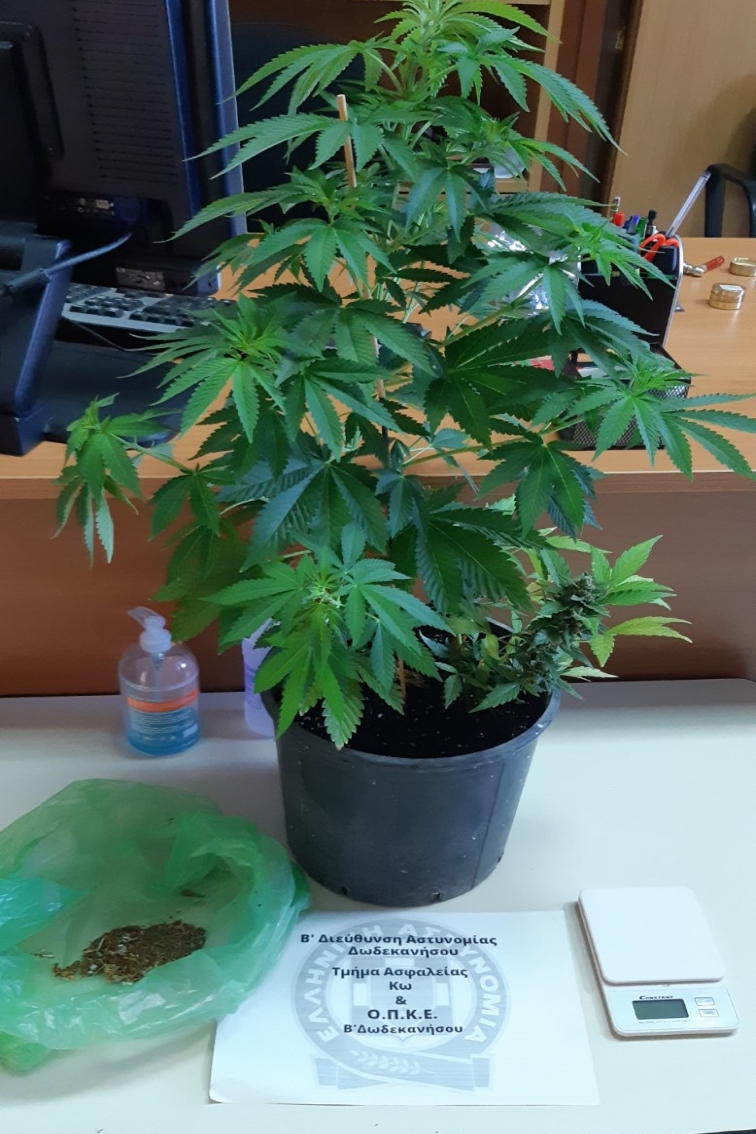 α) από αστυνομικούς του Τμήματος Δίωξης Ναρκωτικών της Υποδιεύθυνσης Ασφάλειας Ρόδου, 48χρονος ημεδαπός ο οποίος κατείχε κάνναβη ακατέργαστη βάρους -6,9- γραμμ., σπόρους κάνναβης και παράλληλα καλλιεργούσε μέσα σε γλάστρα στο μπαλκόνι της κατοικίας του ένα δενδρύλλιο κάνναβης ύψους -1,4- μέτρα,