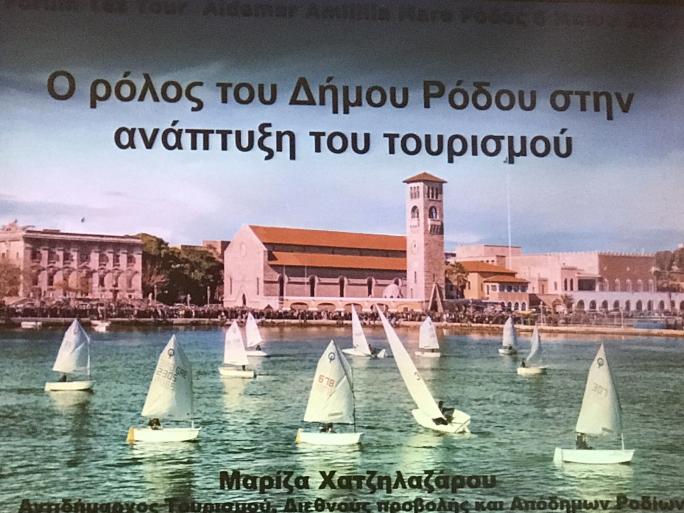 Η αντιδήμαρχος κα Χατζηλαζάρου, στην ομιλία της, ανέλυσε διεξοδικά τις πρωτοβουλίες και ενέργειες του Δήμου Ρόδου που στοχεύουν στην επιμήκυνση της τουριστικής περιόδου στο νησί, καθώς και τις παράλληλες δράσεις της δημοτικής αρχής προς τις ελπιδοφόρες ανατολικές αγορές, αναφέροντας μεταξύ άλλων: