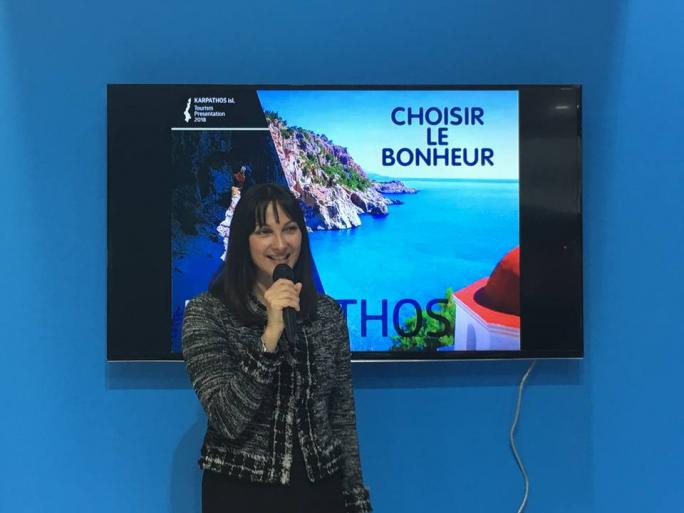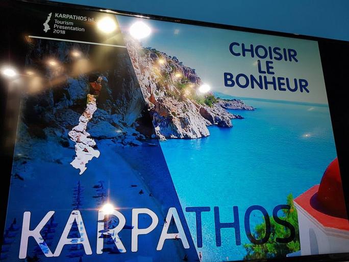 Ικανοποιημένοι και με όρεξη για εξίσου δυναμική συνέχεια, επέστρεψε η αντιπροσωπεία της Επιτροπής Τουρισμού και Ανάπτυξης του Δήμου Καρπάθου από την πρόσφατη συμμετοχή της στην Διεθνή Τουριστική Έκθεση Salon de Vacances(1-4/02), στην οποία, ως γνωστόν, τιμώμενος προορισμός ήταν Κάρπαθος . Τα εγκαίνια του περιπτέρου του ΕΟΤ- την πρώτη μέρα της Έκθεσης- από την Υπουργό Τουρισμού κα Έλενα Κουντουρά, τον Γ.Γ. Τουριστικής Πολιτικής και Ανάπτυξης Γ.Τζιάλλα, την Πρέσβη της Ελλάδας στο Βέλγιο Ελευθερία Γαλαθιανάκη και την προϊσταμένη Γραφείου ΕΟΤ Κάτω Χωρών κα Ελένη Σκαρβέλη, ήταν αναμφίβολα από τις πιο όμορφες στιγμές. Η κα Κουντουρά χαιρέτησε την εκδήλωση και ανταποκρίθηκε θετικά στην πρόσκληση του Προέδρου της Επιτροπής Τουρισμού υποσχόμενη ότι θα επισκεφθεί το νησί μας στους επόμενους μήνες. Ο Πρόεδρος της Επιτροπής Τουρισμού κος Μιχάλης Λυτος απηύθυνε χαιρετισμό στο πολυπληθές ακροατήριο και η κα Φωτεινή Φράγκου έκανε εκτενή παρουσίαση του νησιού. Να σημειωθεί ότι παρουσιάστηκε για πρώτη φορά η εφαρμογή (application) για τα μόνοπατια της Καρπάθου - Karpathian Paths , ενώ στον μπουφέ με τα ελληνικά εδέσματα τα καρπάθικα κεράσματα , όπως ψιλοκούλουρα, ι χειροποίητα γλυκά και μπακλαβαδες κέρδισαν τις εντυπώσεις.! Επίσης, σε όλη τη διάρκεια της έκθεσης διεξαγόταν διαγωνισμός στο περίπτερο του ΕΟΤ με έπαθλο τετραήμερη διαμονή στην Κάρπαθο ! Την εκδηλωση παρακολουθησαν εκτος από την κα Υπουργο Τουρισμού, στελέχη και αξιωματούχοι του Ευρωκοινοβουλίου, ο Δημαρχος Ροδουκ. Φ. Χατζηδιάκος, δημοσιογράφοι, τουριστικοι παραγοντες και πληθος επισκεπτών της Έκθεσης. Η Επιτροπή Τουρισμού και Ανάπτυξης του Δήμου Καρπάθου ευχαριστεί θερμά τους χορηγούς και όσους συνέβαλλαν στην οργάνωση και την επιτυχία της εκδήλωσης.