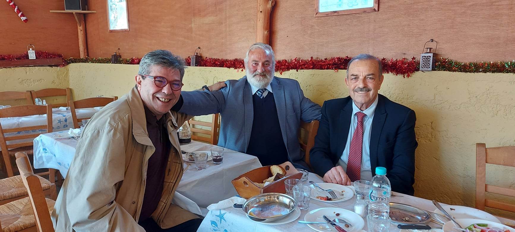 Μια επίσκεψη στην Φάτνη της Σαλάκου οδήγησε στο ίδιο τραπέζι τον Φώτη Χατζηδιάκο, το Μανώλη Σαββή και τον Αγαπητό Πάλλα....Τα ήπιαν και τα είπαν σε μια απο τις καλές ταβέρνες του γραφικού χωριού....Το τι έφαγαν το μάθαμε,,όχι δεν "έφαγαν" το Σάββα, άλλον έχουν στο μάτι, χοιρινά σουβλάκια παραγγείλανε και διάφορες άλλες λιχουδιές,το τι συζήτησαν όχι....Φανταζόμαστε οτι θα ομίλησαν περί τοπικής αυτοδιοίκησης και τα όσα διαδραματίζονται γύρω από το δήμο Ρόδου....Και του χρόνου!!!!