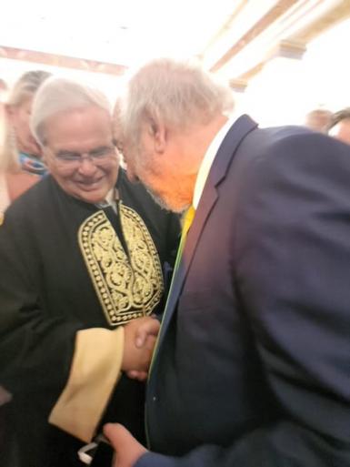 «Μεγάλη χαρά που ο καλός φίλος, Γερουσιαστής, Ρόμπερτ Μενέντεζ αναγορεύτηκε σε Επίτιμο Διδάκτορα του Τμήματος Πολιτικής Επιστήμης και Δημόσιας Διοίκησης της Σχολής Οικονομικών και Πολιτικών Επιστημών του ΕΚΠΑ. Του μετέφερα τα συγχαρητήρια μου και όλων των Δωδεκανησίων και επίσης τις ευχαριστίες για τη στάση που κρατάει στα Εθνικά μας θέματα ως πρόεδρος της επιτροπής Εξωτερικών Σχέσεων της Γερουσίας των Η.Π.Α.»