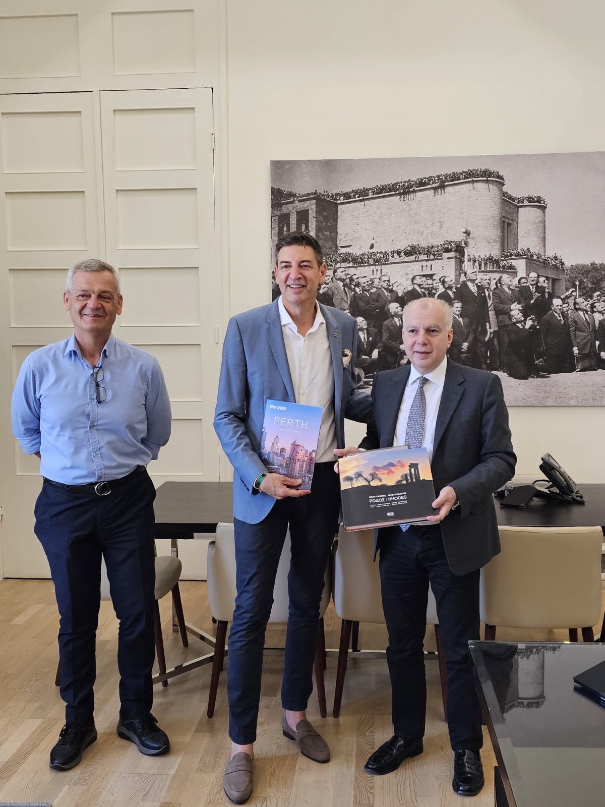 Η διδυμοποιήση του Δήμου της Ρόδου με τον αντίστοιχο του Πέρθ, επιβεβαιώνει ακριβώς αυτή την στενότητα των σχέσεων μεταξύ Ρόδου και Πέρθ. Όπως γνωρίζετε, το 2024 συμπληρώνονται 40 χρόνια από την διδυμοποίηση και ευελπιστώ ότι ο εορτασμός αυτής της «επετείου» θα μας δώσει την ευκαιρία κοινών δράσεων που θα ανανεώνουν και θα εμβαθύνουν τη συνεργασία μας, με οφέλη για τους πολίτες μας. Η συνεργασία και η ανταλλαγή τεχνογνωσίας είναι για την αυτοδιοίκηση ο συντομότερος δρόμος προς την επιτυχία του έργου της στην καθημερινότητα των δημοτών.