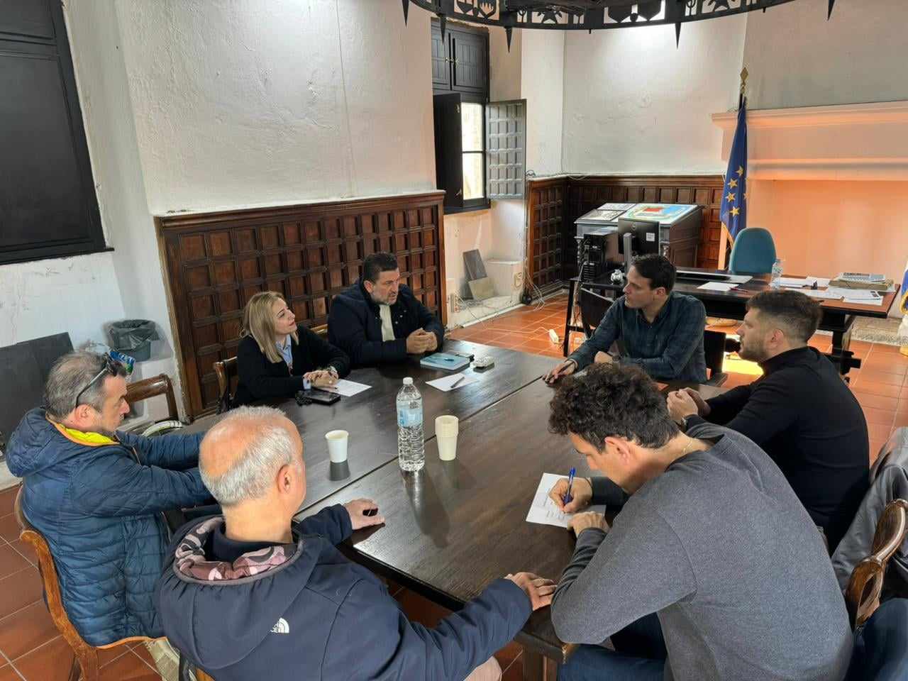 Αφούδόθηκανοι ευχές για μια επιτυχημένηθητεία και για καλήσυνεργασία ακολούθησε ενημέρωση και ανταλλαγήαπόψεωνπάνω σε θέματα που αφορούν την καθημερινότητα της Μεσαιωνικής πόλης, όπως το θέμα της καθαριότητας, της έλλειψηςθέσεωνστάθμευσης, της κίνησηςοχημάτων και δικύκλωνεντός των τοιχών, της επαιτείας, της διαχείρισης των κοινοχρήστωνχώρων.