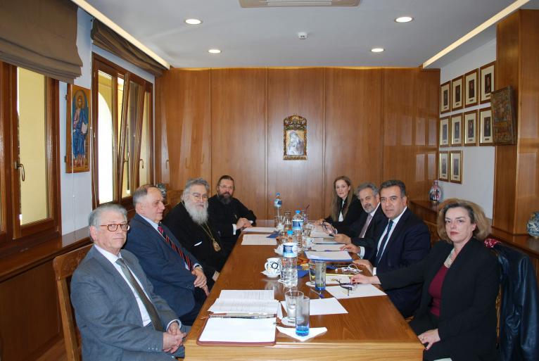 Οι προοπτικές ανάπτυξης του θρησκευτικού και προσκυνηματικού τουρισμού, αλλά και της συνεργασίας Εκκλησίας και Πολιτείας, κυριάρχησαν στη θεματογραφία της συνάντησης του Τομεάρχη Τουρισμού της Νέας Δημοκρατίας και Βουλευτή Δωδεκανήσου, κ. Μάνου Κόνσολα, με μέλη του καθ' ύλην αρμόδιου Συνοδικού Γραφείου Προσκυνηματικών Περιηγήσεων της Ιεράς Συνόδου της Εκκλησίας της Ελλάδος, υπό την προεδρία του Σεβασμιωτάτου Μητροπολίτη Δωδώνης, κ. Χρυσόστομου. Η συνάντηση πραγματοποιήθηκε εχθές, Πέμπτη 8 Μαρτίου 2018, στη Μονή Πετράκη στα Κεντρικά Γραφεία της Ιεράς Συνόδου της Εκκλησίας της Ελλάδος. Εκ μέρους του Συνοδικού Γραφείου συμμετείχαν, ο Πρόεδρος, Σεβασμιώτατος Μητροπολίτης Δωδώνης κ. Χρυσόστομος, ο Γραμματέας, Πανοσιολογιώτατος Αρχιμανδρίτης π. Σπυρίδων Κατραμάδος και οι κκ. Γεώργιος Κούρτης, Αντιπρόεδρος του Γραφείου και Επίτιμος Πρόεδρος του Ελεγκτικού Συνεδρίου και πρώην Πρόεδρος του Παντείου Πανεπιστημίου και ο Χρήστος Πετρέας, Οικονομολόγος – Εμπειρογνώμων Τουρισμού (Μέλη του Συνοδικού Γραφείου). Εκ μέρους του Τομέα Τουρισμού της Νέας Δημοκρατίας, συμμετείχαν ο Τομεάρχης Τουρισμού της Νέας Δημοκρατίας, κ. Μανος Κόνσολας, Βουλευτής Δωδεκανήσου – Αν. Καθηγητής Πανεπιστημίου Αιγαίου, ο κ. Γιώργος Καραχάλιος, Επικεφαλής της Ομάδας Εργασίας Θρησκευτικού Τουρισμού του Τομέα Τουρισμού, Δημοσιογράφος – Φιλόλογος, η κα. Πολυξένη Μοίρα, Μέλος της Ομάδας Εργασίας Θρησκευτικού Τουρισμού, καθηγήτρια του ΑΕΙ Πειραιά – Πρόεδρος Τομέα Τουρισμού και η κα. Άννα Σαμαρά, Μέλος της Ομάδας Εργασίας Διεθνών Σχέσεων και Τουριστικής Προώθησης του Τομέα Τουρισμού, Δικηγόρος παρ’ Εφέταις, MSc Διεθνών και Ευρωπαϊκών Σπουδών. Στην κοινή συνάντηση έγινε σύντομη παρουσίαση του έργου που επιτελεί το συνοδικό γραφείο της Εκκλησίας της Ελλάδος και εξετάστηκαν οι δυνατότητες κοινής συνεργασίας με την ταυτόχρονη επισήμανση του Σεβασμιωτάτου Προέδρου πως: «στόχος της Εκκλησίας είναι να αναδειχθεί σε συνδυασμό με τα Ιερά Προσκυνήματα και Θρησκευτικά Μνημεία, ο ελληνικός πολιτισμός και η ιστορία του τόπου μας». Ο Μάνος Κόνσολας ανέλυσε τις προγραμματικές προτάσεις της Νέας Δημοκρατίας για την ανάπτυξη του θρησκευτικού και προσκυνηματικού τουρισμού. Μεταξύ άλλων, επικεντρώθηκε: α) Στη χαρτογράφηση όλων των Μνημείων θρησκευτικού ενδιαφέροντος, με τη συνεργασία της Εκκλησίας, για τη δημιουργία υποδομών ψηφιακής περιήγησης και προβολής. β) Στη σύνδεση του Θρησκευτικού Τουρισμού με τα ιστορικά και πολιτισμικά στοιχεία που συνοδεύουν τη διαδρομή της Ορθοδοξίας. γ) Στη συνδυαστική αξιοποίηση των Θρησκευτικών Εορτών, που μπορούν να λειτουργήσουν ως πόλος έλξης για τους επισκέπτες. δ) Στην αναβάθμιση και ανάδειξη των Εκκλησιαστικών Μουσείων που πρέπει να ενταχθούν στον πολιτιστικό χάρτη της χώρας και να πάρουν τη θέση που τους αξίζει. ε) Στην επιτάχυνση και διευκόλυνση των διαδικασιών χορήγησης βίζας για τους επισκέπτες του Θρησκευτικού Τουρισμού που προέρχονται από χώρες εκτός Σένγκεν. Ο Γραμματεύς, Πανοσιολογιώτατος Αρχιμανδρίτης π. Σπυρίδων Κατραμάδος του συνοδικού Γραφείου παρουσίασε αναλυτικά τις πραγματοποιούμενες, μέχρι σήμερα, δράσεις και επεσήμανε την αναγκαιότητα να υπάρχει υποστήριξη σε επίπεδο «κεντρικού σχεδιασμού» για όλες τις διαστάσεις του θρησκευτικού Τουρισμού.