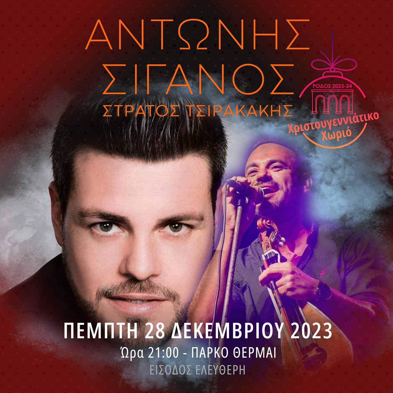 Ο Αντώνης Σιγανός μαζί με τον Στράτο Τσιρακάκη θα μας ξεσηκώσουν την νύχτα της 28ης Δεκεμβρίου στον δικό τους ρυθμό με ελαφρολαϊκά και λαϊκά τραγούδια μεγάλων Ελλήνων ερμηνευτών. Μην το χάσετε!!!