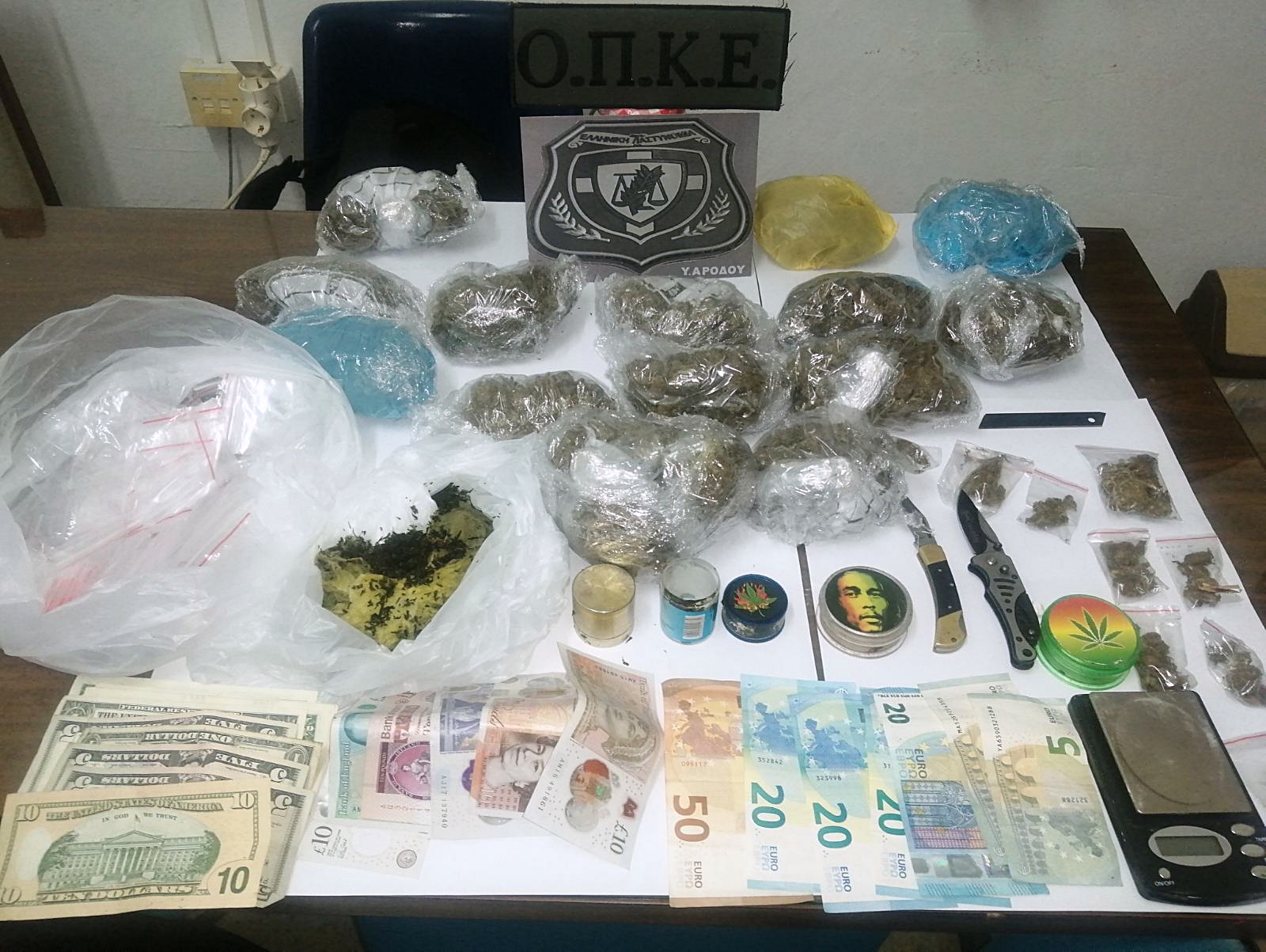 • Κάνναβη βάρους 808,4 γραμμάριων, διαμοιρασμένη σε δεκατέσσερις συσκευασίες
