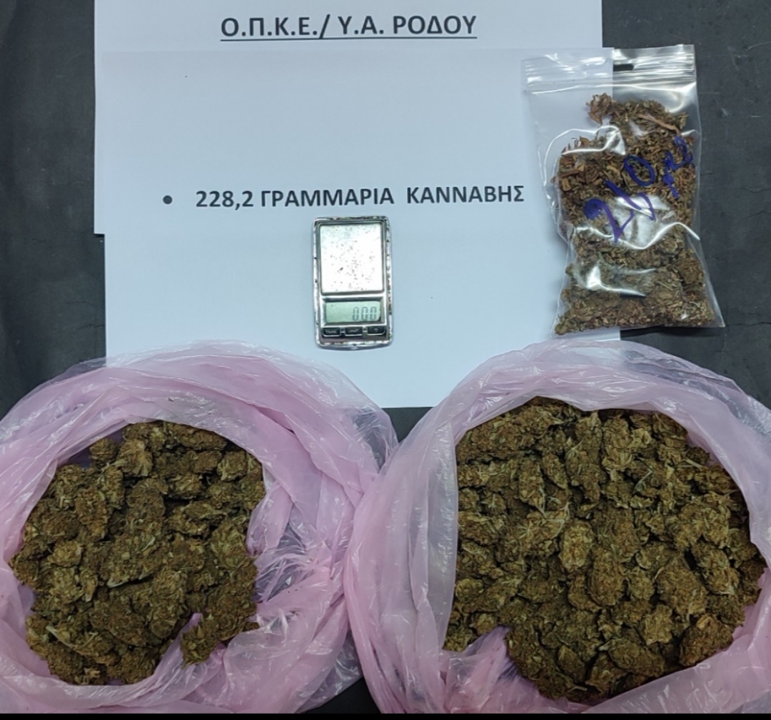 Συνελήφθησαν χθες (Παρασκευή 13 Σεπτεμβρίου 2024) στη Ρόδο, από αστυνομικούς της Ο.Π.Κ.Ε. και του Τμήματος Δίωξης Ναρκωτικών της Υποδιεύθυνσης Ασφαλείας Ρόδου, δύο ημεδαποί ηλικίας 24 και 39 ετών σε βάρος των οποίων σχηματίσθηκε δικογραφία για κατοχή και διακίνηση κάνναβης.