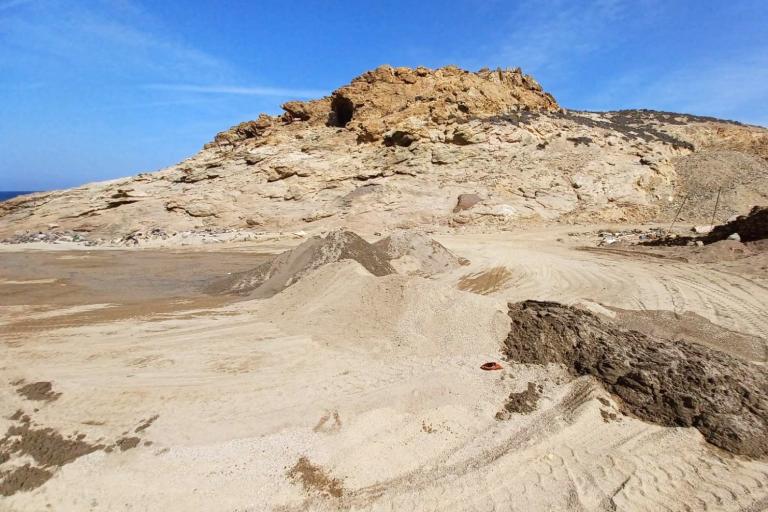 Στη Μύκονο, συνελήφθησαν τρεις οδηγοί-χειριστές μηχανήματος έργων - φορτηγών οχημάτων και ο υπεύθυνος επιχείρησης, γιατί όπως προέκυψε από επιτόπια έρευνα σε παραθαλάσσια περιοχή του νησιού προέβαιναν σε εργασίες αμμοληψίας μέσα απ’ τη θάλασσα, με μηχάνημα έργων (φορτωτή) και εναπόθεση μεγάλης ποσότητας άμμου σε απόσταση 50 μέτρων από την ακτογραμμή, στην παραλία, προκαλώντας εμφανή υποβάθμιση του φυσικού περιβάλλοντος και εδάφους εξαιτίας της αλλαγής στη φυσική διαμόρφωσή της.