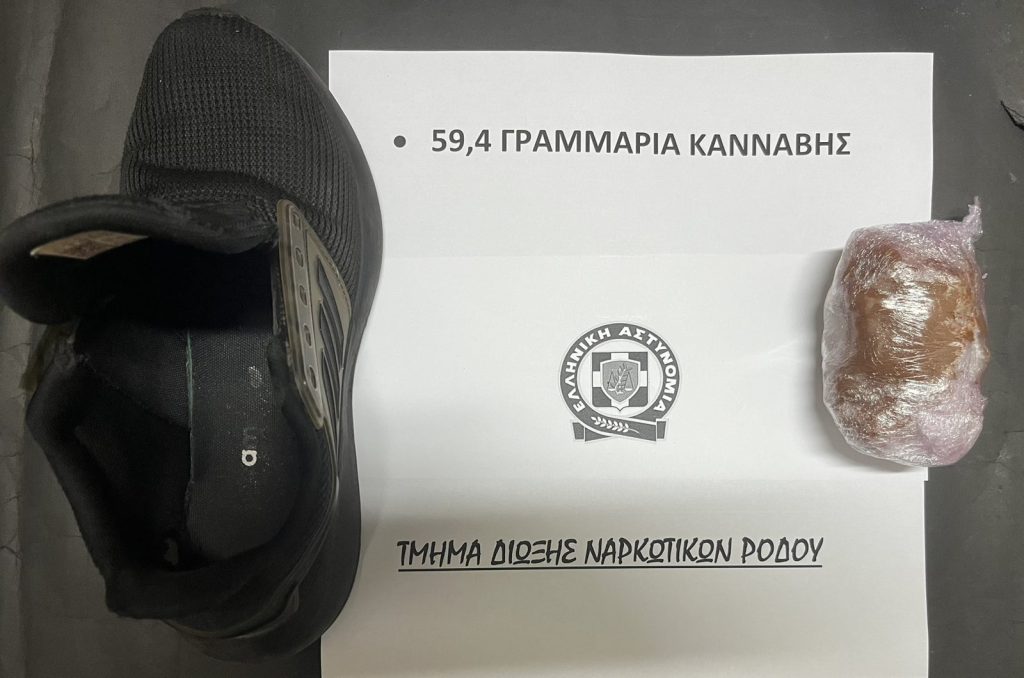 Το δέμα περιείχε ποσότητα ακατέργαστης κάνναβης βάρους -59,4- γραμμαρίων, επιμελώς κρυμμένη μέσα σε υπόδημα.