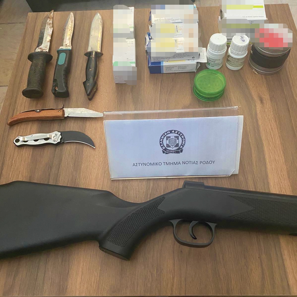 Κατασχέθηκαν 373 ναρκωτικά δισκία, Θρυμματιστής κάνναβης, κάνναβης, αεροβόλο τυφέκιο κ.α.