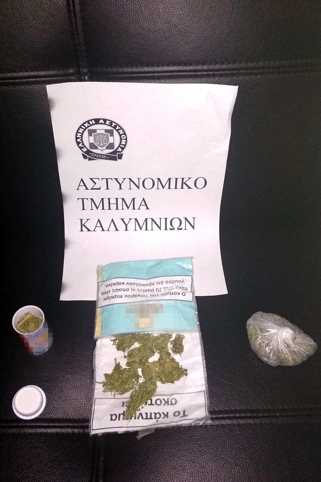 Την 21-12-2020 το απόγευμα συνελήφθη στην Κάλυμνο, από αστυνομικούς του Αστυνομικού Τμήματος Καλυμνίων, 36χρονος αλλοδαπός, γιατί στο πλαίσιο αστυνομικού ελέγχου, βρέθηκε στην κατοχή του και κατασχέθηκε ποσότητα κάνναβης βάρους -38,15- γραμμ.