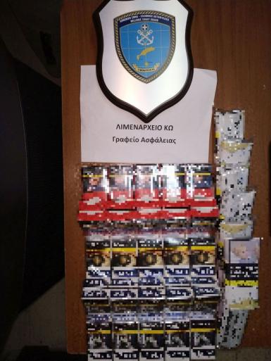 Συγκεκριμένα, στο πλαίσιο συστηματικών ελέγχων, εντοπίστηκε ο 27χρονος από τα ανωτέρω στελέχη στον επιβατικό λιμένα Κω μετά τον κατάπλου Ε/Γ-Ο/Γ πλοίου, να μεταφέρει εντός χειραποσκευής (50) πακέτα τσιγάρων των είκοσι τσιγάρων έκαστο και οκτώ (08) πακέτα καπνού των 50γρ. έκαστο, το σύνολο των οποίων δεν έφερε ένσημη ταινία ειδικού φόρου κατανάλωσης.