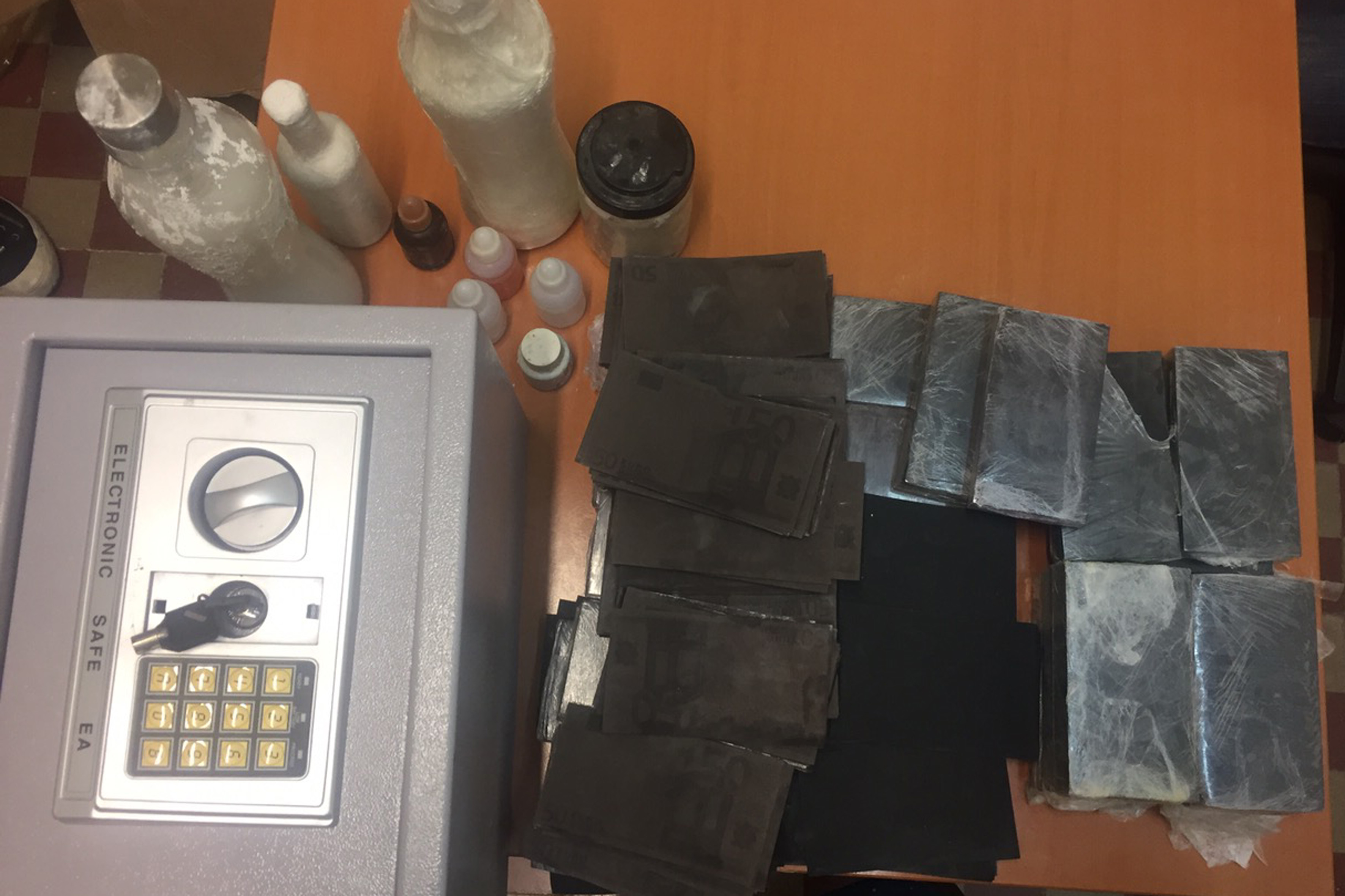 Κατασχέθηκαν δεσμίδες με εντυπώσεις στοιχείων χαρτονομισμάτων, διάφορες χημικές – χρωστικές – διαλυτικές ουσίες κ.α.