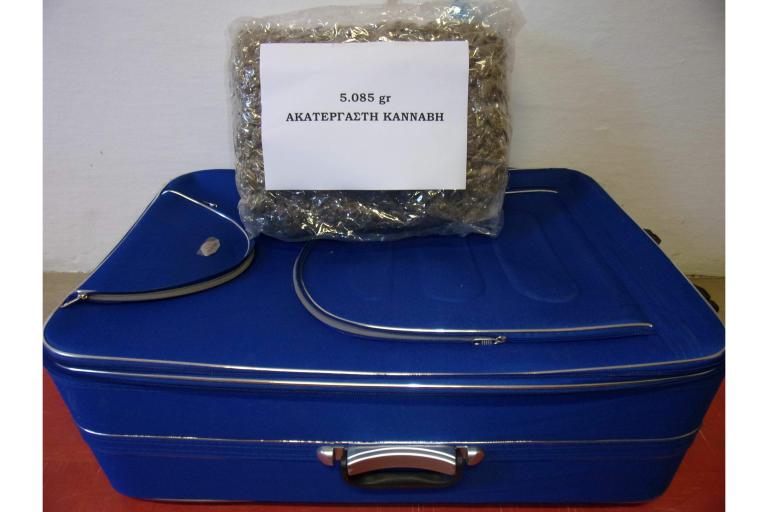 Ειδικότερα, σήμερα το πρωί στο πλαίσιο της προσπάθειας που καταβάλει η Ελληνική Αστυνομία για την καταπολέμηση της διακίνησης των ναρκωτικών, πραγματοποιήθηκε έλεγχος στον κατηγορούμενο, που μόλις είχε αφιχθεί στο νησί με πλοίο της γραμμής Πειραιάς – Ρόδος και διαπιστώθηκε ότι μετέφερε μέσα σε ταξιδιωτική αποσκευή (βαλίτσα) ποσότητα ακατέργαστης κάνναβης βάρους -5- κιλών και -85- γραμμαρίων.