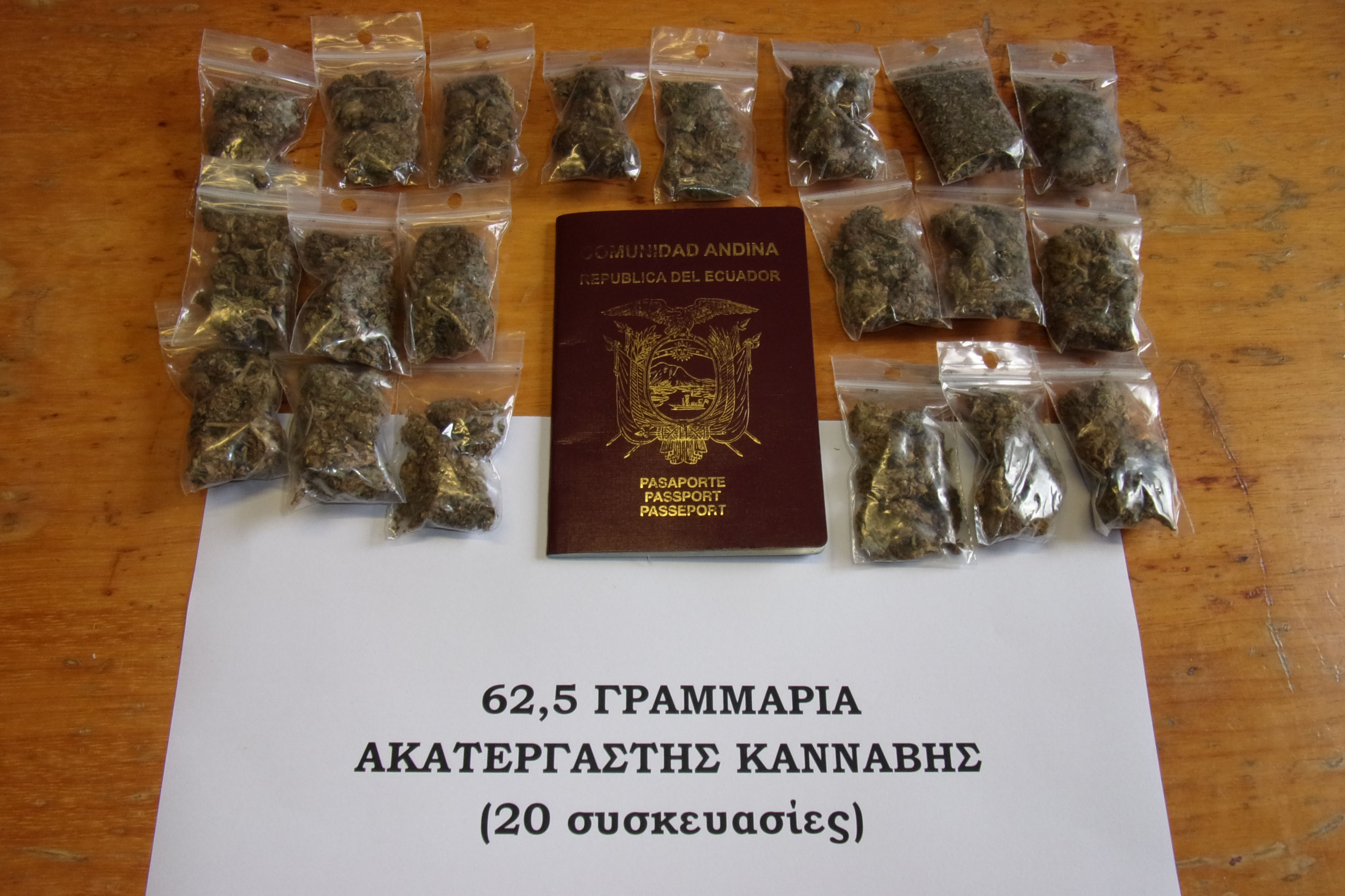 Τα ανευρεθέντα ναρκωτικά και το πλαστό διαβατήριο κατασχέθηκαν.