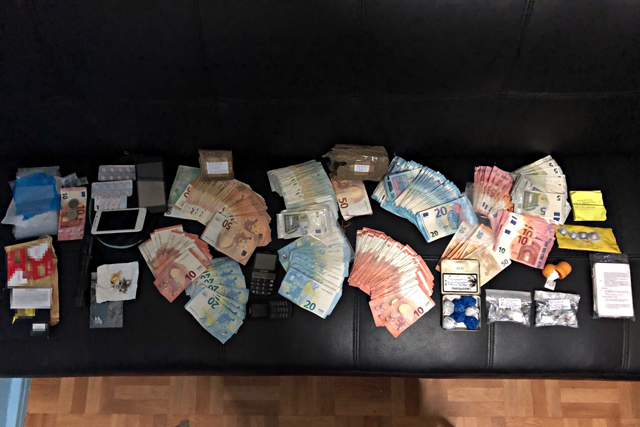 Κατασχέθηκαν -128- μικροσυσκευασίες που περιείχαν ηρωίνη έτοιμες για διαμοιρασμό, -42- ναρκωτικά δισκία, τιμαλφή, σημειώσεις με συναλλαγές ναρκωτικών, συσκευή «tasez», -8.526-€