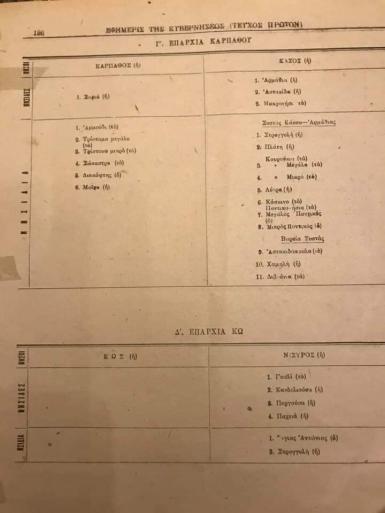 γ) Καρπάθου, περιλαμβάνουσα τας νήσους Κάρπαθον και Κάσον. Πρωτεύουσα Πηγάδια.