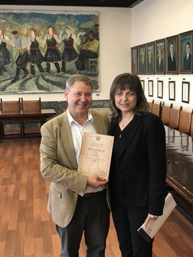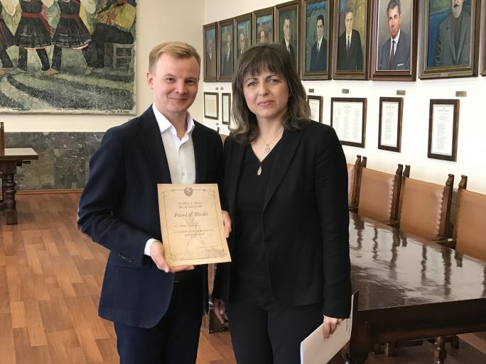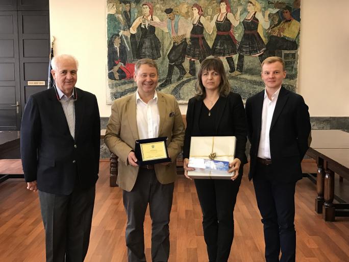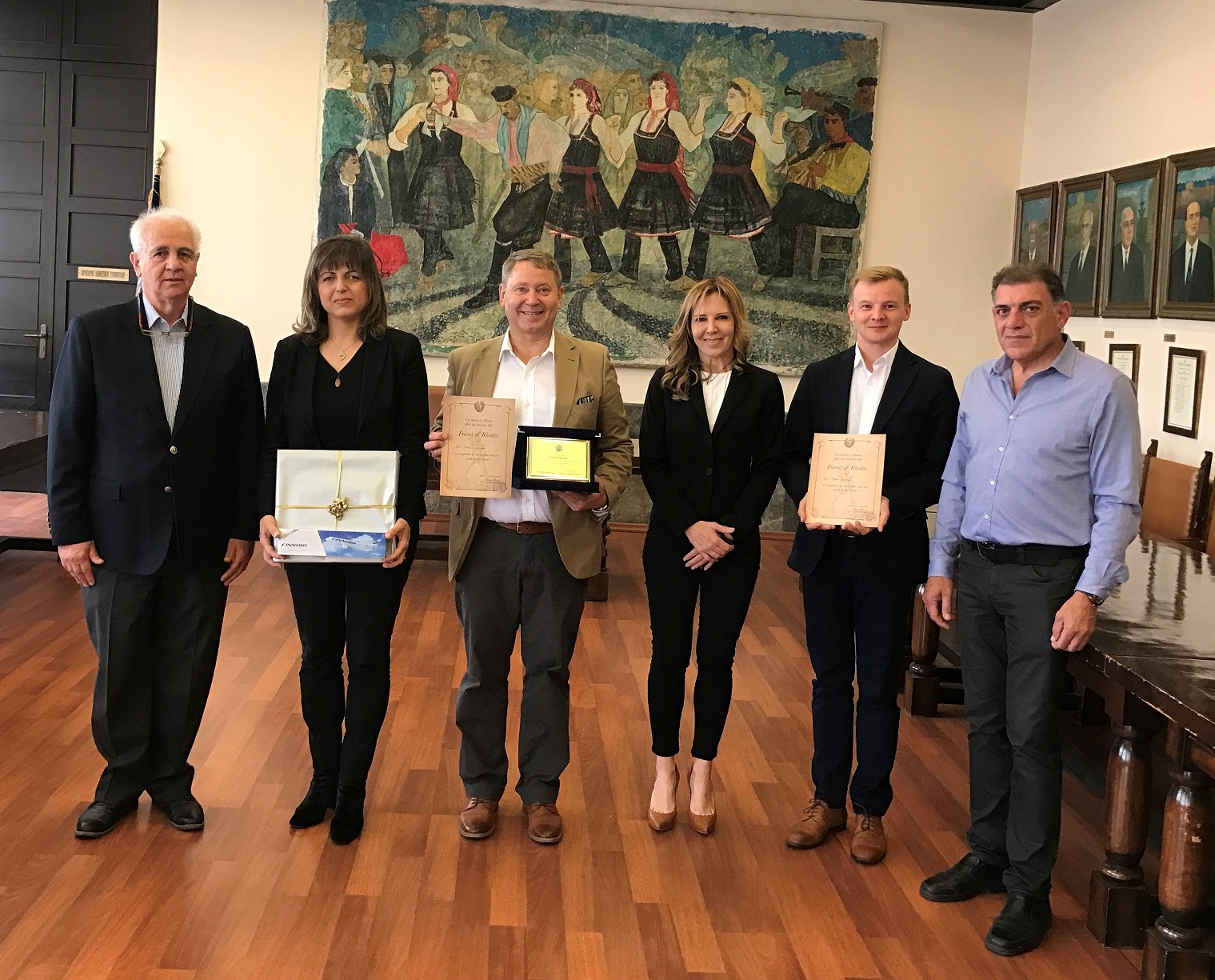 ΔΕΛΤΙΟ ΤΥΠΟΥ-Θέμα: Τα 55 χρόνια αδιάλειπτης παρουσίας του στη Ρόδο γιορτάζει φέτος ο μεγαλύτερος τουριστικός οργανισμός της Φινλανδίας AURINKOMATKAT. -Τιμητικές πλακέτες στους εκπροσώπους του Φινλανδικού οργανισμού απένειμε η αντιδήμαρχος Τουρισμού κα Μαρίζα Χατζηλαζάρου. -Την επί 55 χρόνια αδιάλειπτη παρουσία του μεγαλύτερου τουριστικού οργανισμού της Φινλανδίας AURINKOMATKAT στη Ρόδο, αγαπημένο και κορυφαίο προορισμό για τους Φινλανδούς, τίμησε στο πρόσωπο του διευθύνοντος συμβούλου του οργανισμού κ. Timo Kousa και του υπευθύνου προορισμών κ. Pekka Antila, η αντιδήμαρχος Τουρισμού, Διεθνούς Προβολής και Αποδήμων Ροδίων κα Μαρίζα Χατζηλαζάρου, παρουσία και του τουριστικού πράκτορα και ιδιοκτήτη του πρακτορείου Top Eurotravel Net– Rhodos κ. Ηλία Κωτιάδη, που εκπροσωπεί στη Ρόδο όλα τα χρόνια τον φινλανδικό tour operator. Η εκδήλωση πραγματοποιήθηκε σήμερα (11 Μαϊου 2018) στην αίθουσα εθιμοτυπίας του Δημαρχιακού Μεγάρου.