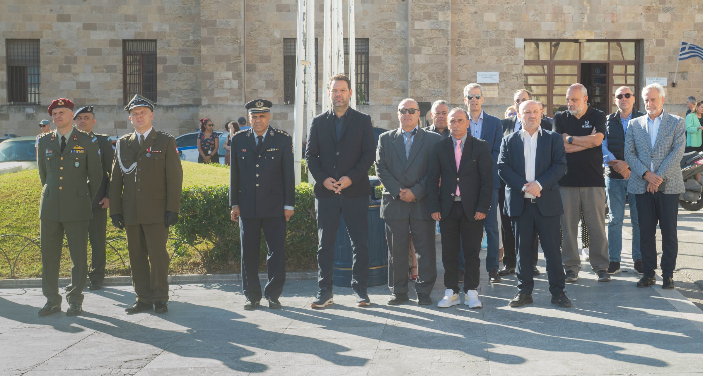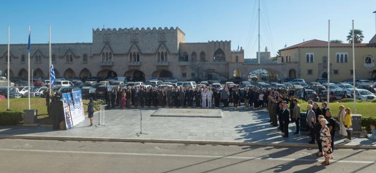 Ακολούθησε η εθιμοτυπική ομαδική φωτογραφία μπροστά από το Δημαρχείου του νησιού και στη συνέχεια δεξίωση στη Λέσχη Εθνοφυλακής της Ρόδου.