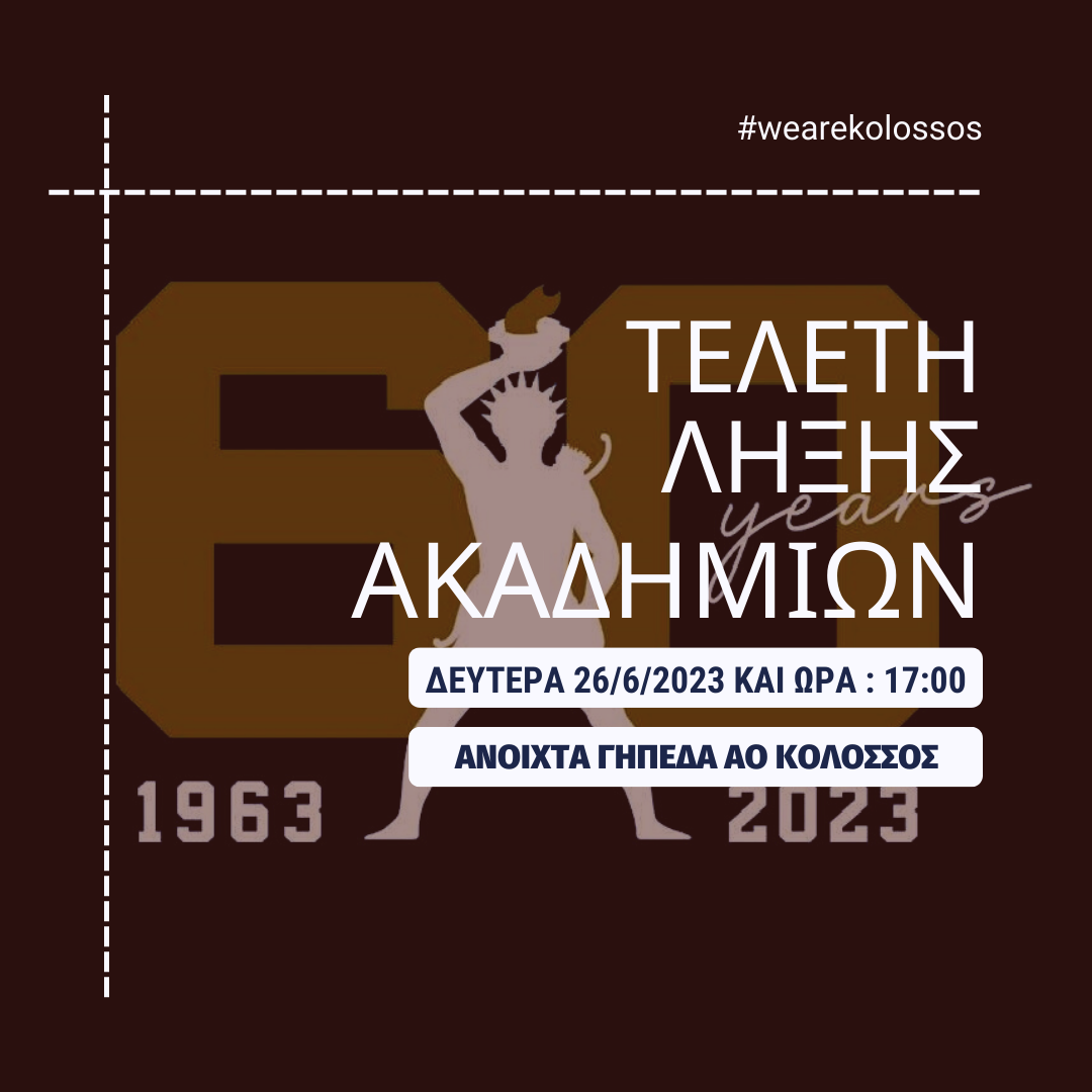 Την προσεχή Δευτέρα 26 Ιουνίου θα γίνει η τελετή λήξης τωνακαδημιών μας για τη φετινή αγωνιστική περίοδο. Από 17:00 έως 19:00 στα ανοιχτά μας γήπεδα, θα γίνει η τελετή λήξης των ακαδημιών μας, με τις προπονήσεις όμως να συνεχίζονται μέχρι και το τέλος Ιουλίου. Στην καλοκαιρινή μας γιορτή, θα δώσουν το «παρών» όλα τα παιδιά των ακαδημιών μας και φυσικά οι γονείς τους, με πολλά παιχνίδια, διασκέδαση και φυσικά πολύ μπάσκετ. Να είστε όλοι εκεί…