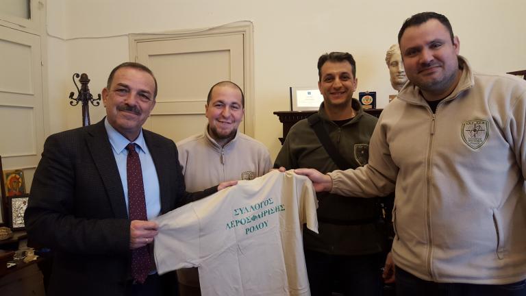 Δελτίο Τύπου-Θέμα: Τις προοπτικές για την διεξαγωγή διεθνούς αθλητικού αγώνα, εξετάζει ο δήμος Ρόδου με το Σύλλογο Αεροσφαίρισης -Τα μέλη του νεοσύστατου Συλλόγου Αεροσφαίρισης Ρόδου, δέχτηκε την Παρασκευή 10 Φεβρουαρίου του 2017 ο Δήμαρχος Ρόδου κος Φώτης Χατζηδιάκος, στο πλαίσιο της ενημέρωσης του για τις δράσεις και την κοινωνική προσφορά του συλλόγου, αλλά και την εξέταση των προοπτικών για την από κοινού συνδιοργάνωση διεθνούς αγώνα. Η αντιπροσωπεία του συλλόγου που απαριθμεί συνολικά ογδόντα μέλη, αποτελούμενη από τους κ. Σταματίδης Χρήστος Πρόεδρο, Βασιλάκη Μιχάλη Αντιπρόεδρο και τον Βασιλείου Παναγιώτη Ταμία, ενημέρωσαν το Δήμαρχο για τις ενέργειες με κοινωνικό υπόβαθρο που «συνοδεύουν» το Σύλλογο Αεροσφαίρισης Ρόδου από την ημέρα της ίδρυσης του, αλλά και για την «πλούσια» εθελοντική δραστηριότητα τους - ακόμη και μέσα από εθελοντικές δραστηριότητες του Δήμου Ρόδου - για την προστασία του φυσικού περιβάλλοντος των περιοχών του νησιού μας. Παράλληλα ζήτησαν την αρωγή του Δήμου, για την διεξαγωγή σεμιναρίου, που θα έχει ως κεντρική ιδέα την γνωριμία του αθλήματος στο κοινό της Ρόδου και αναζήτηση χώρου άθλησης των μελών του συλλόγου και διεξαγωγής αγώνων. Ο κος Χατζηδιάκος αναφέρθηκε στις προοπτικές για την από κοινού διοργάνωση διεθνούς αθλητικού αγώνα στη Ρόδο, αναλύοντας τη σημαντικότητα του αθλητικού τουρισμού, για την περαιτέρω ενίσχυση του τουριστικού προϊόντος του νησιού μας