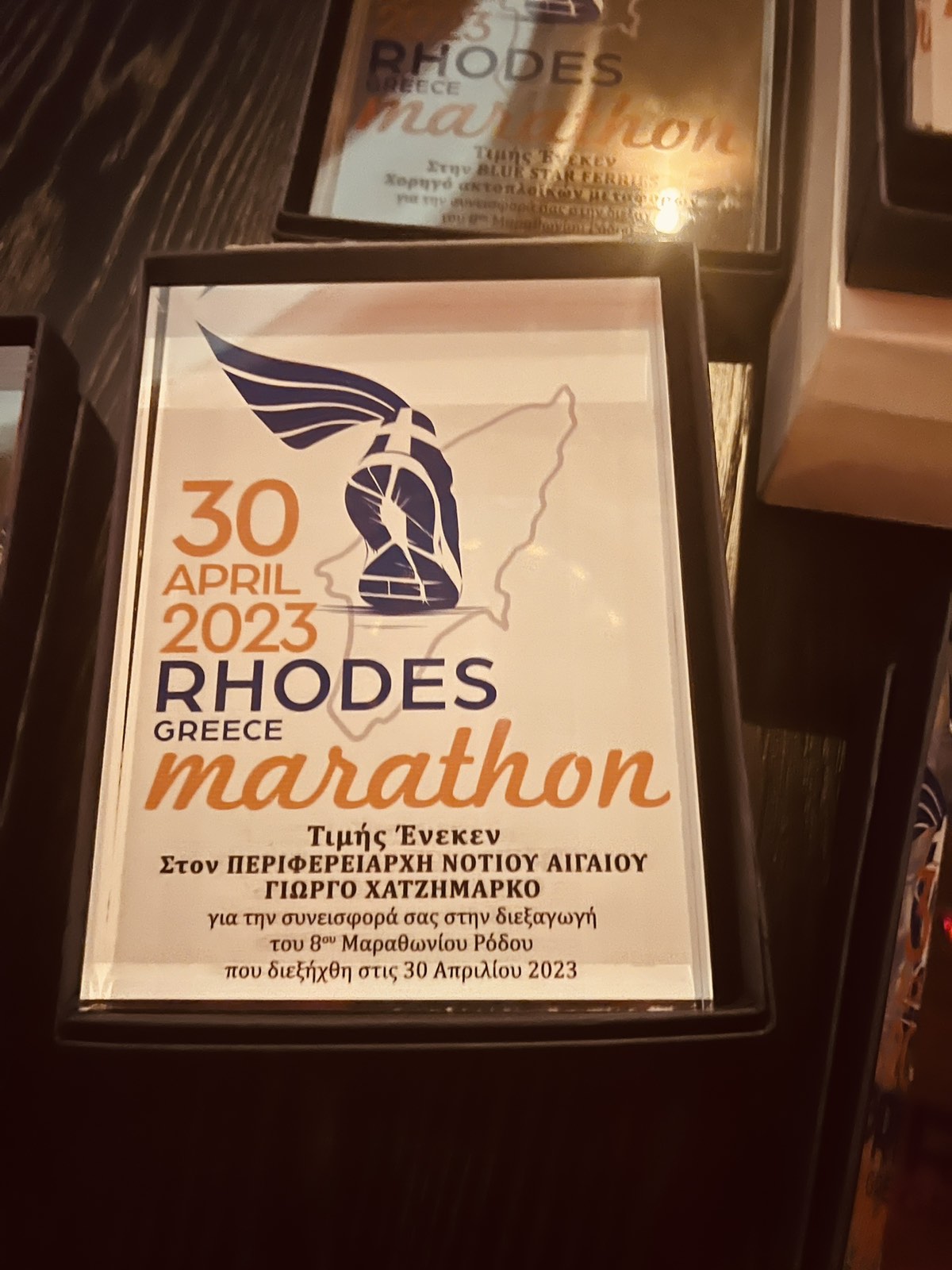 Τους χορηγούς, υποστηρικτές και εθελοντές του 8ου Μαραθωνίου Ρόδου τίμησε η Οργανωτική Επιτροπή