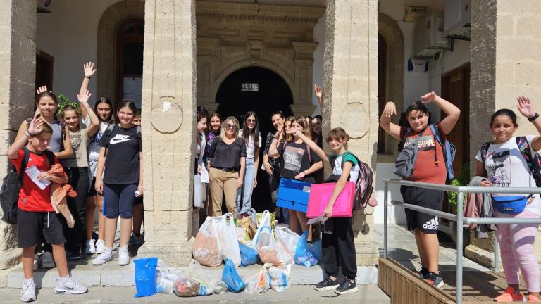 Η Γιορτή των Ζώων συνδυάστηκε και από τη συγκινητική ανταπόκριση των παιδιών του σχολείου που συγκέντρωσε τροφές για τα αδέσποτα ζώα του νησιού, οι οποίες θα παραδοθούν στη Φιλοζωική Ρόδου.