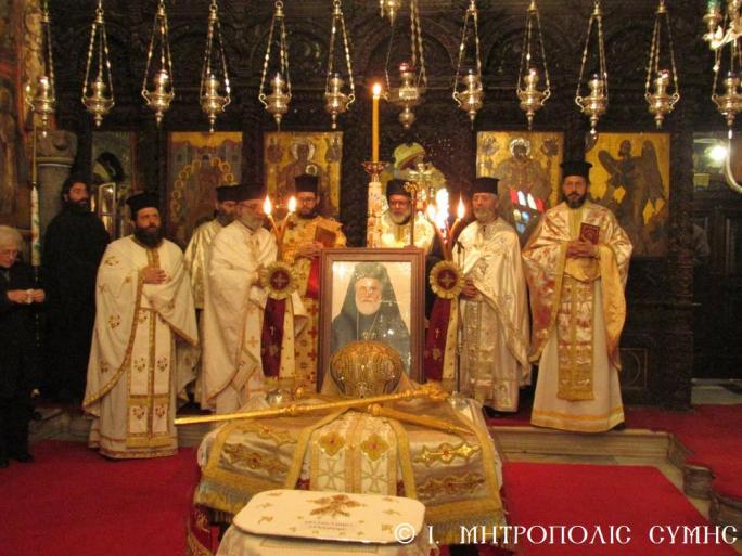 Τήν μνήμη τοῦ μακαριστοῦ Μητροπολίτου μας τίμησαν οἱ Ἀρχές τοῦ τόπου διά τοῦ ἐντιμ. Δημάρχου Σύμης κ. Ἐλευθ. Παπακαλοδούκα, οἱ συνεργάτες του Ἔφοροι, οἱ ἐργαζόμενοι τῆς Μονῆς καί ἀρκετός κόσμος, πού ἦρθε ἀπό τήν Σύμη. Τέλος στήν μεγάλη Τράπεζα τῆς Μονῆς, προσφέρθηκαν τά κόλλυβα καί καφές σ’ ὅλους τούς συμμετέχοντες.