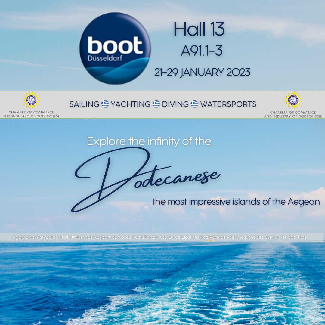 Συνεπές στον δρόμο εξωστρέφειας που επέλεξε να ακολουθήσει το Επιμελητήριο Δωδεκανήσου, επενδύοντας στην ανάπτυξη και ανάδειξη του θαλάσσιου τουριστικού προϊόντος, συμμετέχει στην μεγαλύτερη έκθεση θαλάσσιου τουρισμού ΒΟΟΤ, στο Ντίσελντορφ της Γερμανίας (21 – 29 Ιανουαρίου 2023).
