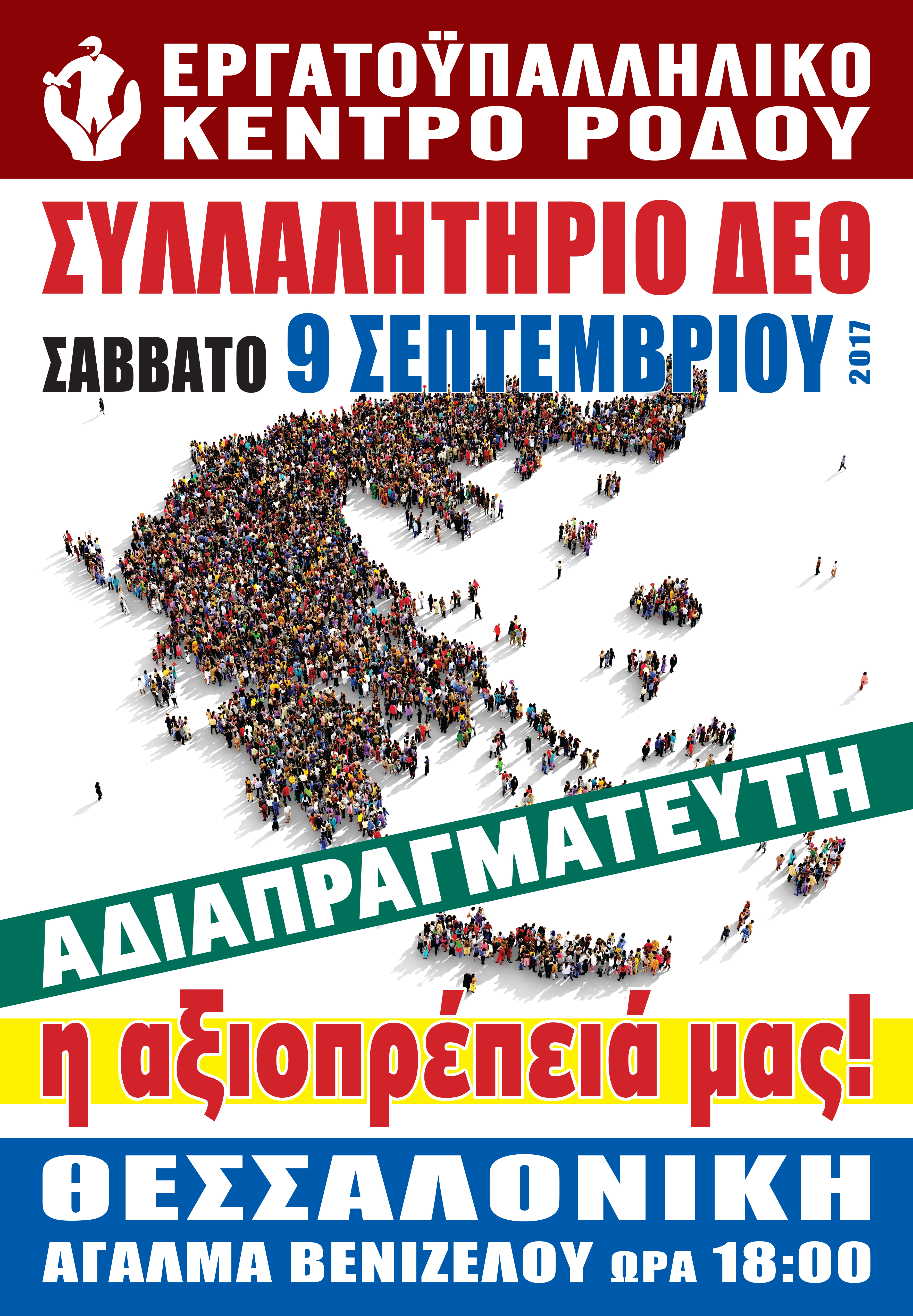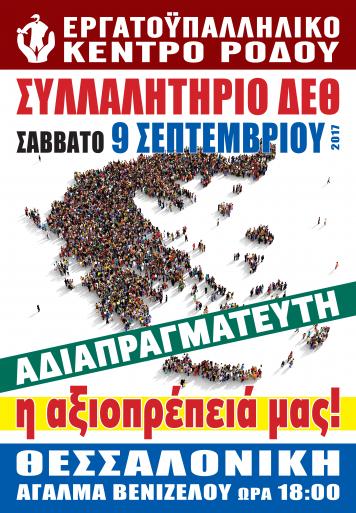 ΕΡΓΑΤΟΫΠΑΛΛΗΛΙΚΟ ΚΕΝΤΡΟ ΡΟΔΟΥ -ΔΕΛΤΙΟ ΤΥΠΟΥ -Το Εργατοϋπαλληλικό Κέντρο Ρόδου συμμετέχει στο μεγάλο εργατικό και κοινωνικό συλλαλητήριοτης ΓΣΕΕ, το ΣΑΒΒΑΤΟ, 9 Σεπτέμβρη 2017, στη ΘΕΣΣΑΛΟΝΙΚΗ -Ρόδος, 29/8/2017