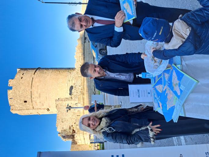 Γέμισε με τουρίστες σήμερα το πρωί το λιμάνι της Ρόδου καθώς κατέφθασε το πρώτο κρουαζιερόπλοιο για το 2023. Μετέφερε 1.770 τουρίστες απο Ισπανία,Ιταλία, Γερμανία,Ρωσία και Ισραήλ. Ο εντεταλμένος σύμβουλος στον Τουρισμό του δήμου Ρόδου Θανάσης Βυρίνης, ο πρόεδρος του Λιμενικού Ταμείου Νότιας Δωδεκανήσου Βασίλης Παπαοικονόμου μαζί με στελέχη της Διεύθυνσης Τουρισμού καθώς και με εκπροσώπους Αστυνομίας και Λιμενικού ανέβηκαν στο κρουαζιερόπλοιο και ευχήθηκαν για το νέο έτος στον καπετάνιο και στα στελέχη του πλοίου και αντάλλαξαν και δώρα. Το πλοίο αναχώρησε πριν απο λίγο για Κύπρο.
