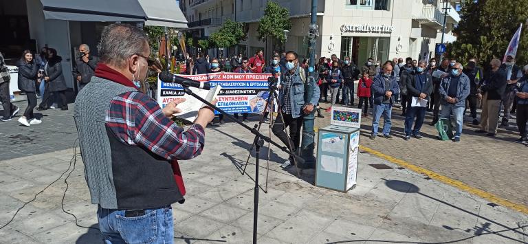 Χαιρετίζουμε τους συναδέλφους, τα σωματεία, τους εργαζόμενους, τους συνταξιούχους και τους νεολαίους, που πήραν μέρος στην σημερινή μαχητική συγκέντρωση. Στην συγκέντρωση στάλθηκε το μήνυμα από τα εργατικά σωματεία και τους φοιτητές ότι δεν θα μείνουμε απαθείς μπροστά στην διάλυση και ιδιωτικοποίηση της υγείας, που προωθεί η κυβέρνηση, ότι θα δώσουμε την μάχη ενάντια στην ακρίβεια και την φοροληστεία. Επίσης εκφράστηκε η καταδίκη της στρατιωτικής επέμβασης της Ρωσίας στην Ουκρανία, αλλά και η στάση του ΝΑΤΟ και της ΕΕ οι οποίες ρίχνουν λάδι στην φωτιά ενός γενικότερου πολέμου.