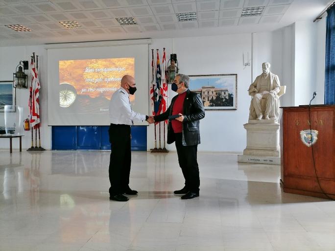 Μετά το πέρας της παρουσίασης, ο εκπρόσωπος του Διοικητή της Σχολής Υποναυάρχου κ. Καλογερόπουλου, Διευθυντής Σπουδών Πλοίαρχος κ. Τζάνος Π.(ΠΝ), ευχαρίστησε την Πολιτιστική Ομάδα "Αρχιπέλαγος" για το έργο της και επέδωσε αναμνηστική τιμητική πλακέτα της Σχολής.