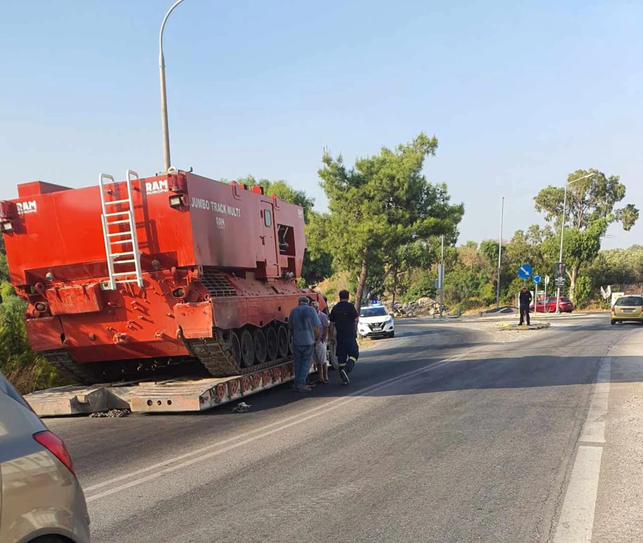 "Ματιάσαμε το πυεοσβεστικό Jeopard που ήρθε στη Ρόδο για να βοηθήσει στην κατάσβεση της φωτιάς με πρωτοβουλίσ του Βαιου Καλοπήτα. Οπως γράφει ο Babis Mastrodimitris:"Το "ματιάσαμε" το πυροσβεστικό Leopard. Η πλατφόρμα που το μετέφερε έπαθε λάστιχο στην Κάλαθο! Αναζητείται / αναμένεται άλλο μεταφορικό μέσο για να προωθηθεί στο μέτωπο της φωτιάς...", Οπως πληροφορηθήκαμε σνολικά εχει αλλάξει τρεις πλατφόρμες μέχρι στιγμής