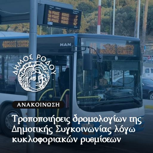 Ενημερώνουμε τους επιβάτες των λεωφορείων της δημοτικής συγκοινωνίας πως λόγω των κυκλοφοριακών ρυθμίσεων στην είσοδο και έξοδο της πόλης από τη περιοχή των Κρητικών, τα δρομολόγια διαμορφώνονται ως εξής: