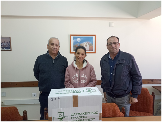 - Ο Φαρμακευτικός Σύλλογος Δωδεκανήσου με την συμμετοχή της συνεταιριστικής φαρμακαποθήκης ΣΥ.ΦΑ.ΡΟ. Ο.Ε. ανταποκρινόμενοι θετικά σε σχετικό αίτημα των ΔΙΑΣΩΣΤΩΝ ΡΟΔΟΥ, παρέδωσαν την Τρίτη 29 Μαρτίου 2023 στα γραφεία του Συλλόγου υγειονομικό υλικό προκειμένου να χρησιμοποιηθεί στην πραγματοποίηση της 1ης Πανελλήνιας Εκπαίδευσης Έρευνας και Διάσωσης στην οποία θα λάβουν μέρος περίπου 80 εκπαιδευόμενοι, μέλη εθελοντικών ομάδων και σωμάτων ασφαλείας από όλη την Ελλάδα.