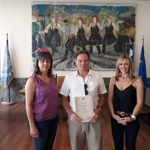 ΔΕΛΤΙΟ ΤΥΠΟΥ-Θέμα: Φίλους της Ρόδου από Σκωτία και Βέλγιο τίμησε η Διεύθυνση Τουρισμού Δήμου Ρόδου -Φίλους της Ρόδου από την Σκωτία και το Βέλγιο που επιλέγουν τη Ρόδο για να περάσουν τις διακοπές τους από το 1993, τίμησε η αντιδήμαρχος Τουρισμού Διεθνούς Προβολής και Απόδημων Ροδίων κα Μαρίζα Χατζηλαζάρου, την προηγούμενη Τετάρτη 2 Αυγούστου 2017, στην καθιερωμένη πλέον εκδήλωση στην αίθουσα εθιμοτυπίας, στο Δημαρχιακό Μέγαρο.