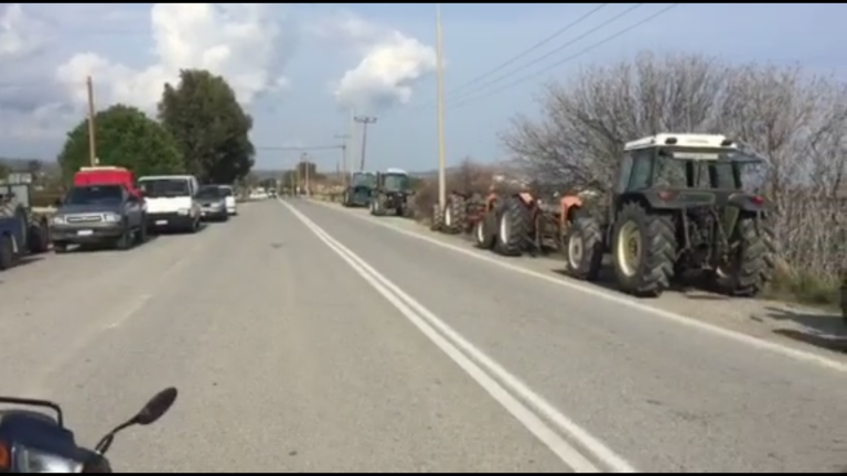 ΦΩΤΟ - Έκλεισαν το δρόμο στο Γεννάδι οι αγρότες με τα τρακτέρ