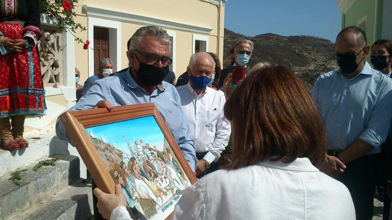 Στη συνέχεια η κ. Σακελλαροπούλου επισκέφτηκε το Μουσείο Χατζηβασίλη όπου της δωρήθηκε πίνακας με το πορτρέτο της ζωγραφισμένο από τον Γιάννη Χατζηβασίλη το οποίο δέχτηκε με πολλή συγκίνηση.