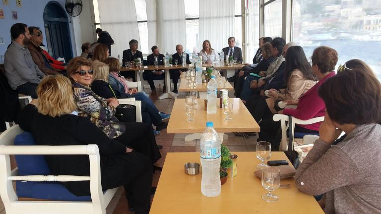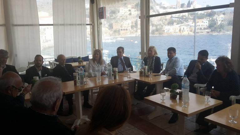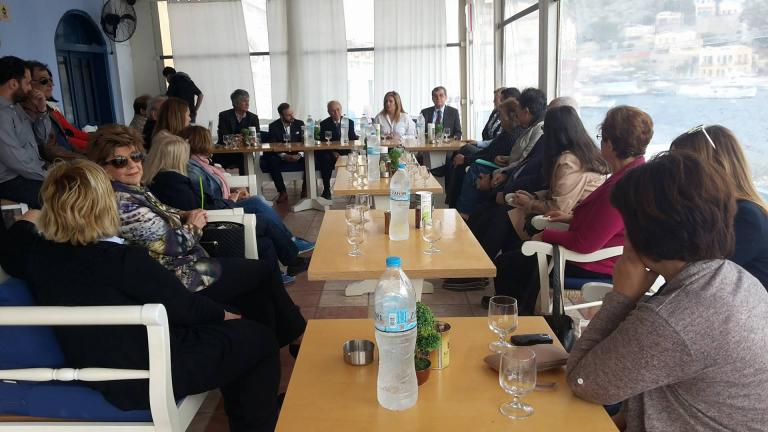 Στο νησί της Σύμης περιόδευσε χθες η πρόεδρος της "Δημοκρατικής Συμπαράταξης" Φωφη Γεννηματά. Συνοδευόταν απο τον αντιπρόεδρο της Βουλής Δημήτρη Κρεμαστινό, τη Λίτσα Φτακλάκη, τον Βάιο Καλοπήτα και απο άλλα τοπικά στελέχη της Δημοκρατικής Συμπαράταξης. Ξεκίνησε από το μνημείο του πατέρα της Γιώργου Γεννηματά όπου κατέθεσε στεφάνι και είχε συναντήσεις με παράγοντες του νησιού. Επισκέφτηκε και το δημαρχείο της Σύμης και συζήτησε τα προβλήματα του νησιού με τον δήμαρχο της Λευέρη Παπακαλοδούκα. Συναντήθηκε και με τον πρώην δήμαρχο Σύμης Μιλτιάδη Σαρρή. Τελευταίος σταθμός ήταν το Μοναστήρι του Πανορμίτη. Εκεί συναντήθηκε με τον Μητροπολίτη Χρυσόστομο. Σήμερα το απόγευμα η κ. Γεννηματά θα πραγματοποιήσει πολιτική ομιλία στο δημοτικό θέατρο της Ρόδου.