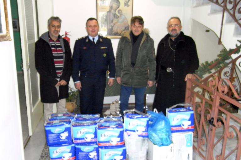 Ο Διευθυντής της Β’ Διεύθυνσης Αστυνομίας Δωδεκανήσου Αστυνομικός Διευθυντής ΓΕΩΡΓΑΚΑΚΟΣ Γεώργιος συνοδευόμενος από στελέχη της Υπηρεσίας του παρέδωσε σήμερα (24.12.2016) τα συγκεντρωθέντα είδη στο Γηροκομείο Κω «Ο Άγιος Νεκτάριος»