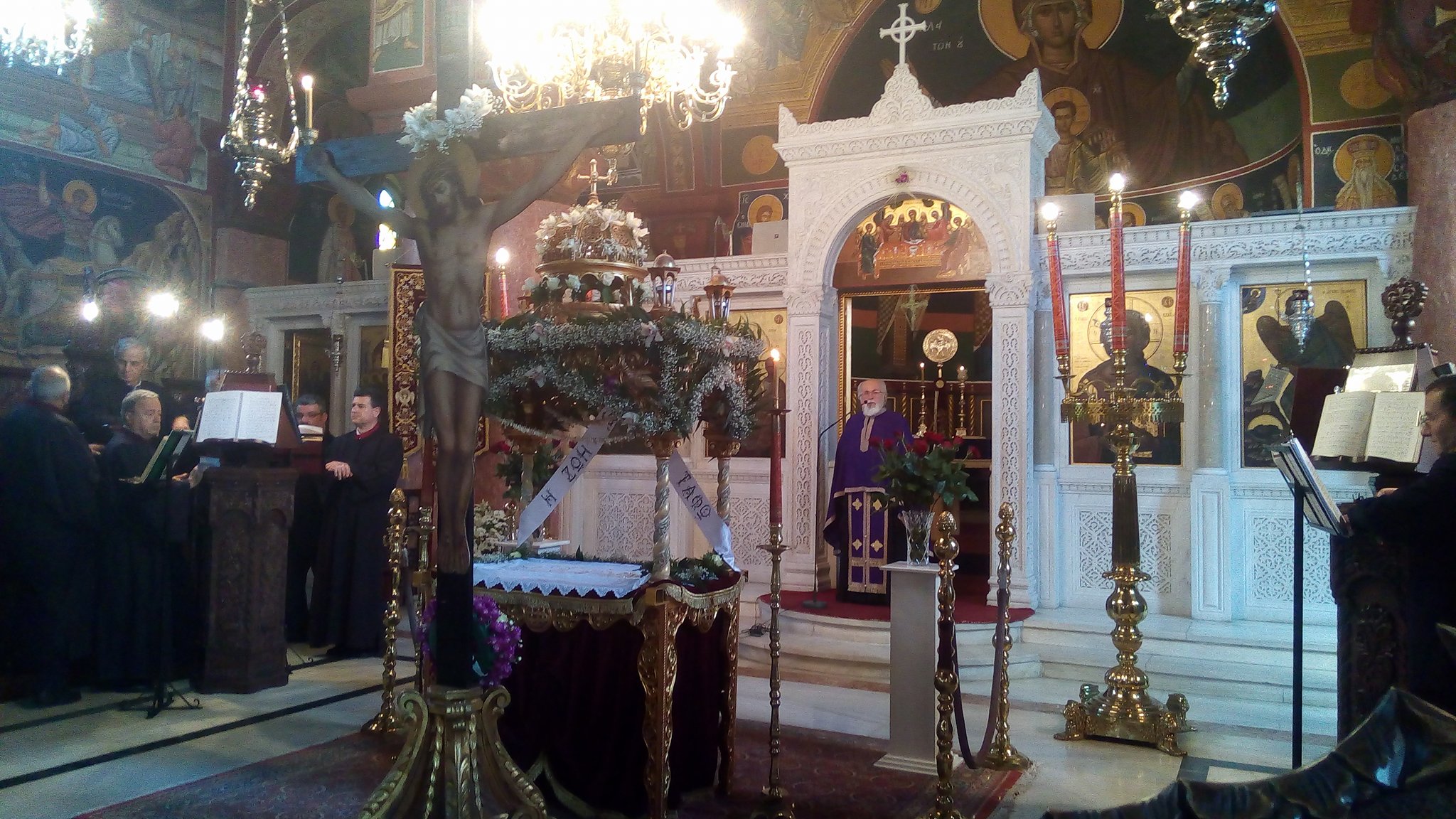 Το VERENA.GR πιστό στην παράδοση, επισκέφθηκε κάποιους απο τους επιταφίους της πόλεως Ρόδου και κατέγραψε τη σημερινή μεγάλη ημέρα για τη Χριστιανοσύνη. Ξεκινήσαμε απο τον Ταξιάρχη όπου και φέτος, Μεγάλη Παρασκευή, ήταν γεμάτος με κόσμο που δεν ξέχασε τους δικού του ανθρώπους που είναι θαμμένοι στο νεκροταφείο. Όμορφος, κομψός ο επιτάφιος του Ταξιάρχη, στολισμένος με λουλούδια της Ανοιξης. Εκεί συναντήσαμε και το δήμαρχο Ρόδου Φώτη Χατζηδιάκο που έκανε "περιοδεία" στους επιταφίους. Αμέσως μετά η στάση μας ήταν στον Αγιο Παντελεήμονα, στη Μεσαιωνική Πόλη. Ολα είναι έτοιμα για την Ανάσταση, εντός και εκτός ναού. Εξω έχει κρεμαστεί ο Ιούδας και περιμένει την πυρά το βράδυ του Μεγάλου Σαββάτου. Μέσα ο παπά Χρήστος τελεί τη λειτουργία ενώ ο επιτάφιος και φέτος είναι εκπληκτικός! Επόμενος σταθμός ο Ευαγγελισμός. Εδώ τελετουργεί ο επίσκοπος Ολύμπου Κύριλλος και η εκκλησία είναι γεμάτη με πιστούς. Και εδώ ο επιτάφιος είναι απέριττος, κομψός. Επιστρέφουμε και περνάμε απο τον Αι Δημήτρη, το παλιό νεκροταφείο της Ρόδου. Και εδώ υπάρχει κίνηση, συγγενείς νεκρών με λουλούδια επισκέπτονται τους τάφους και τα εναποθέτουν. Εδω συναντήσαμε και υπέροχες γάτες! Μέσα ο επιτάφιος είναι στολισμένος, στα χρώματα του πένθους, με λουλούδια και ανθάκια. Τελευταίος σταθμός, μια μικρή αλλά όμορφη εκκλησία, στη περιμετρική οδό, απέναντι απο τη νέα μαρίνα, ο ναός Αγίου Νεκταρίου και Αγίου Σπυρίδωνα. Και εδώ ο επιτάφιος έχει στολιστεί με τέχνη και αγάπη. Το συμπέρασμα απο το οδοιπορικό μας είναι οτι οι ανθρωποι έχουν επιστρέψει στην εκκλησία, ίσως είναι ένα απο τα τελευταία καταφύγια, της ελπίδας και της αισιοδοξίας...Και του χρόνου!