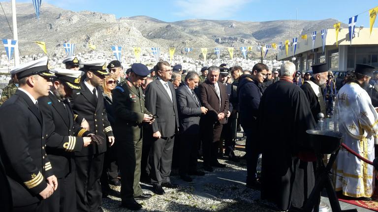 "Σήμερα αποτίνουμε φόρο τιμής στους ανθρώπους εκείνους που θυσίασαν τη ζωή τους στα Ίμια, «τοις κείνων ρήμασι πειθόμενοι». Ήταν ο Υποπλοίαρχος Παναγιώτης Βλαχάκος, ο Υποπλοίαρχος Χριστόδουλος Καραθανάσης και ο Αρχικελευστής Έκτορας Γιαλοψός. Ελπίζω ολόψυχα το μέλλον να μη μας επιφυλάσσει άλλους λόγους για ανάλογες επετείους. Προσφέρουμε κλάδο ελαίας στη φίλη γείτονα Τουρκία και ζητούμε την ίδια συμπεριφορά από αυτήν. Οι οποιεσδήποτε διαφορετικές απόψεις θα πρέπει να λύνονται στα διεθνή δικαστήρια με σεβασμό, πάντα, των διεθνών συνθηκών και τους διεθνούς διακαίου και όχι με στρατιωτικές αντιπαραθέσεις. Πάνω σε αυτά στηρίχθηκε η φιλία των δύο λαών μας που οι δύο μεγάλοι μας πολιτικοί Ελευθέριος Βενιζέλος και Κεμάλ Ατατούρκ εμπράκτως μας κατέλειπαν ως παρακαταθήκη. Το Αιγαίο είναι η θάλασσα που θα πρέπει να ενώνει και να μη διχάζει τις δύο χώρες μας.»