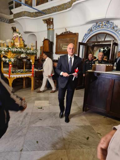 Στο ακριτικό Καστελόριζο παραμένει ο Υπουργός Εθνικής Άμυνας Νίκος Δένδιας όπου βρίσκεται απο χθες το πρωί. Το βράδυ μαζί με τον Αρχηγό ΓΕΕΘΑ Στρατηγό Δημήτριο Χούπη και τον δήμαρχο Μεγίστης Νίκος Ασβέστη παρακολούθησε την τελετή της Ανάστασης στον Ιερό Ναό Κωνσταντίνου και Ελένης. Η παρουσία του υπουργού Αμυνας τέτοιες ημέρες στην ακρη της Ελλάδας είναι το πιο δυνατό μήνυμα προς την απέναντι πλευρά που συνεχίζει το χαβά της