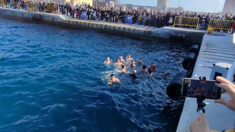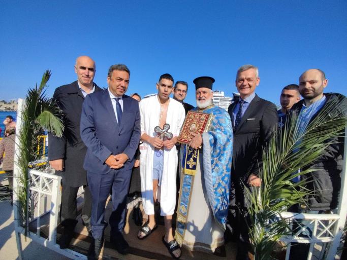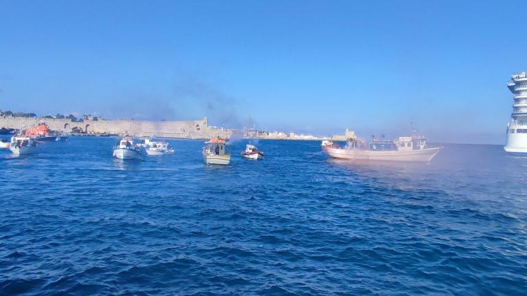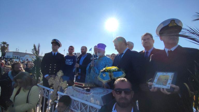 Πλήθος κόσμου συγκεντρώθηκε και στον τουριστικό λιμένα της Ρόδου όπου έγινε η ρίψη του Τιμίου Σταυρού απο τον ιερέα της εκκλησίας του Αγίου Παντελεήμονα πατέρα Χρήστο. Στη θάλασσα έπεσαν 25 κολυμβητές. Τυχερός ο Σωτήρης Θύμιος. Στο τέλος τα μέλη της ενορίας μοίραζαν δίπλες τους πιστούς που παρακολούθησαν την τελετή.