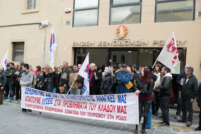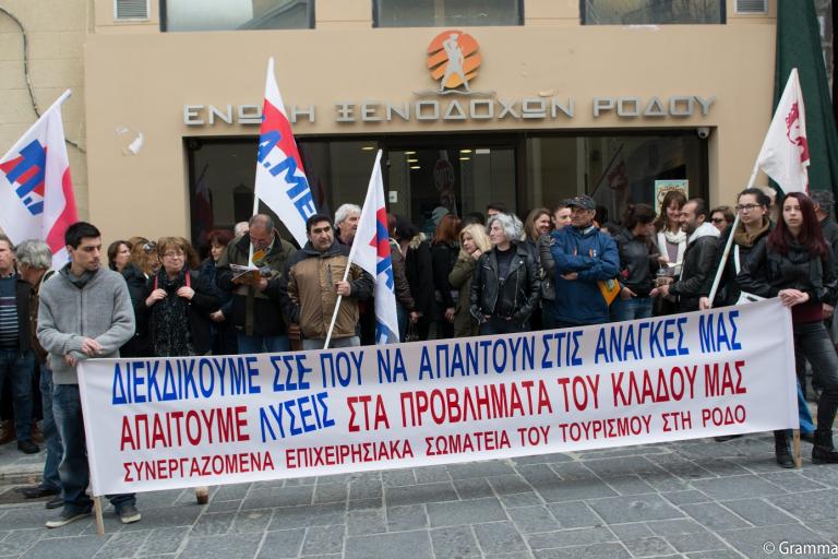 Δελτίο Τύπου-Πραγματοποιήθηκε η προγραμματισμένη συγκέντρωση στην Ένωση Ξενοδόχων Ρόδου την οποία οργάνωσαν τα τρία Συνεργαζόμενα επιχειρησιακά Σωματεία του Τουρισμού (AmiliaMare&ParadiseVillage, MiraMareκαι Sheraton). Αποφάσεις στήριξης είχαν λάβει και η Α΄ ΕΛΜΕ Δωδεκανήσου, το Σωματείο Διπλωματούχων Ξεναγών, το Σωματείο Συνταξιούχων ΙΚΑ, το Σωματείο Ιδιωτικών Υπαλλήλων, το Παράρτημα Ρόδου της ΟΓΕ και η Γραμματεία Ρόδου του ΠΑΜΕ. Λίγο πριν τις 3.00 μμ άρχισε να καταφτάνει κόσμος, αρκετοί συνάδελφοι πχ οι συντηρητές ή εργαζόμενοι άλλων κλάδων, ήρθαν αμέσως μετά το σχόλασμα, με τα ρούχα της δουλειάς. Η συγκέντρωση είχε παλμό και κυριάρχησαν Συνθήματα όπως: «Συλλογικές Συμβάσεις στα Ξενοδοχεία, όχι Γαλέρα και Σύγχρονη Δουλεία», «Ρεκόρ στον Τουρισμό, μ ‘απλήρωτη δουλειά, οι ξενοδόχοι κέρδη, εμείς με ψίχουλα» και «Για τους ξενοδόχους κέρδη και χλιδή και για τους εργάτες μίζερη ζωή». Στις 3.30 έγινε ομιλία από τον πρόεδρο του Σωματείου του AmiliaMare&ParadiseVillageόπου αναδείχθηκε η κατάσταση στον κλάδο, οι επιδιώξεις της εργοδοσίας, πως αυτές δένουν με την πολιτική της κυβέρνησης που παίρνει μέτρα που αφαιρεί δικαιώματα από τους εργαζόμενους για να ενισχύσει τους μεγαλοεπιχειρηματίες. Αναδείχθηκαν επίσης οι ευθύνες της ηγεσίας του Σωματείου Ξενοδοχοϋπαλλήλων για τη στάση της στο ζήτημα της Συλλογικής Σύμβασης, να διαπραγματεύεται μακριά και κρυφά από τους εργαζόμενους, για τον κίνδυνο οι εργαζόμενοι να μείνουν χωρίς σύμβαση και εντελώς ξεκρέμαστοι, με τους εργοδότες να αποχωρούν από την Ένωση. Μετά την ομιλία, πραγματοποιήθηκε συνάντηση με αντιπροσωπεία της Ένωσης Ξενοδόχων, όπου οι εκπρόσωποι των Σωματείων παρουσίασαν τη θέση τους ότι διεκδικούν Σύμβαση με αυξήσεις που να καλύπτει τις απώλειες των χρόνων της κρίσης, που να απαντά στις σύγχρονες ανάγκες. Με το τέλος της συνάντησης, η αντιπροσωπεία ενημέρωσε τους συγκεντρωμένους. Κάλεσε όλους τους εργαζόμενους του κλάδου να κάνουν δική τους υπόθεση την πάλη για την υπογραφή Συλλογικής Σύμβασης, να μη μείνει χώροςδουλειάς, χωριό, συνοικία στην πόλη που δε θα κουβεντιαστεί.Πάλη που περνά και μέσα από την αλλαγή του συσχετισμού δύναμης στο κλαδικό Σωματείο. Τα Σωματεία συνεδριάσουν το επόμενο διάστημα και θα ανακοινώσουν τις επόμενες δράσεις τους. Ρόδος, 21 Φεβρουαρίου 2017